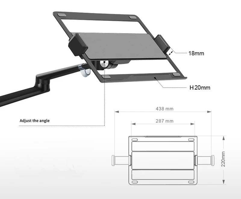 Soporte para portátil de aleación de aluminio 2 en 1 con brazo de montaje para monitor, 2 en 1