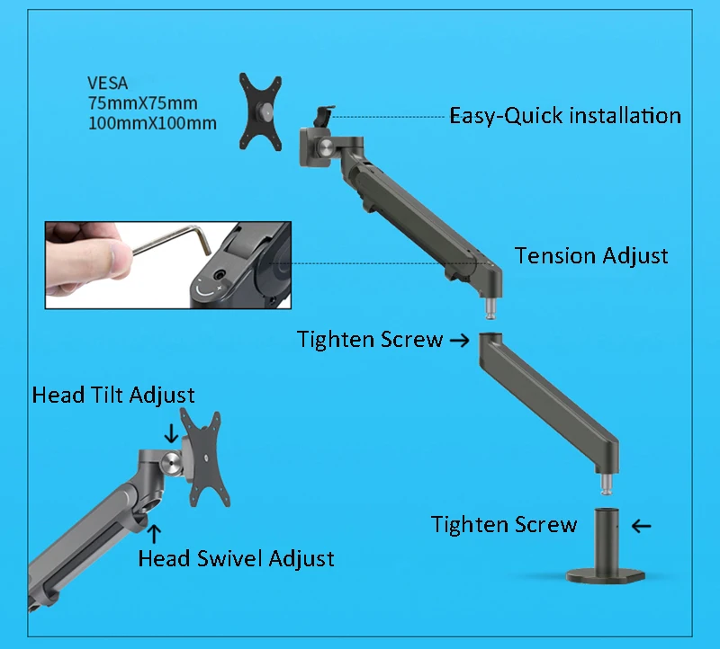 Instalación de abrazadera: Para grosor de escritorio dentro de 20mm a 60mm