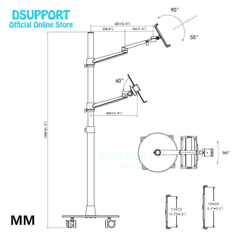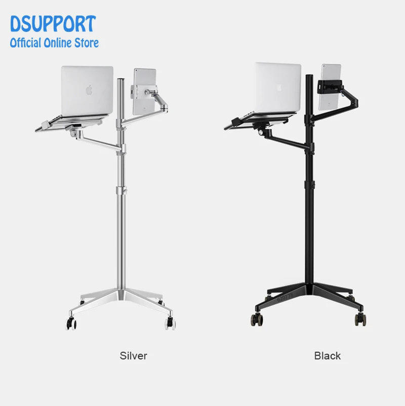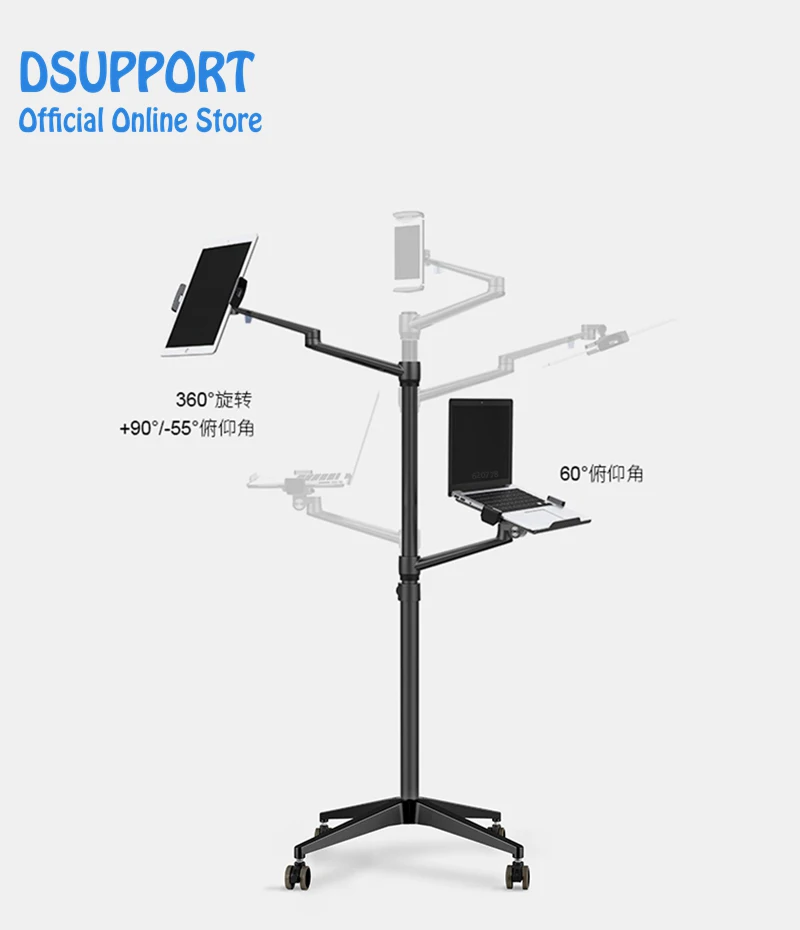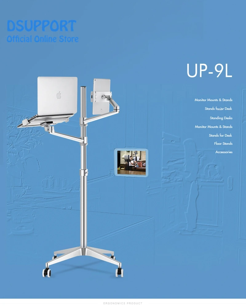 Comprar Soporte 3 en 1 de aleación de aluminio, rotación de 360 grados, para móvil, tableta, PC, portátil, doble brazo, para suelo de oficina, Lapdesk, UP-9L