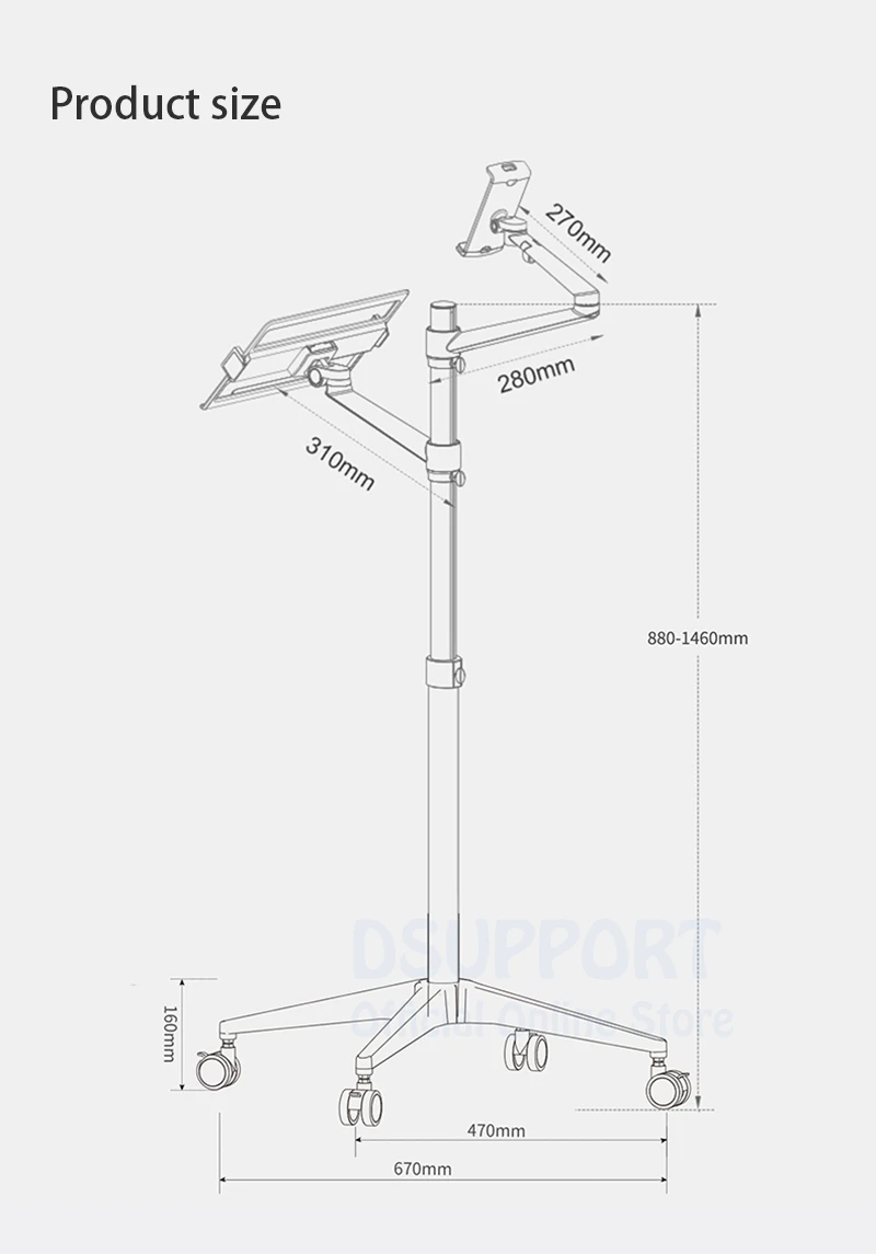 Características: brazo doble, ajuste de altura.
