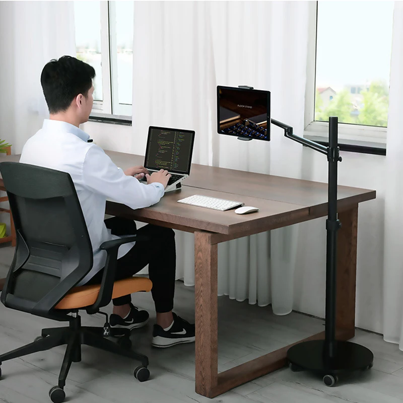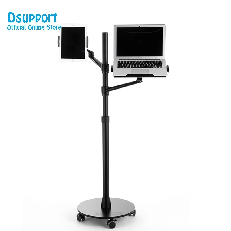 Comprar Soporte 3 en 1 de aleación de aluminio, rotación de 360 grados, para móvil, tableta, PC, portátil, doble brazo, para suelo de oficina, Lapdesk, UP-9L