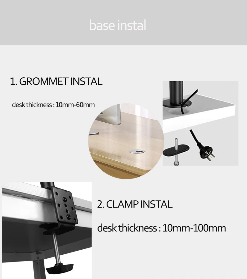 Instalación de abrazadera: Espesor del escritorio=100mm