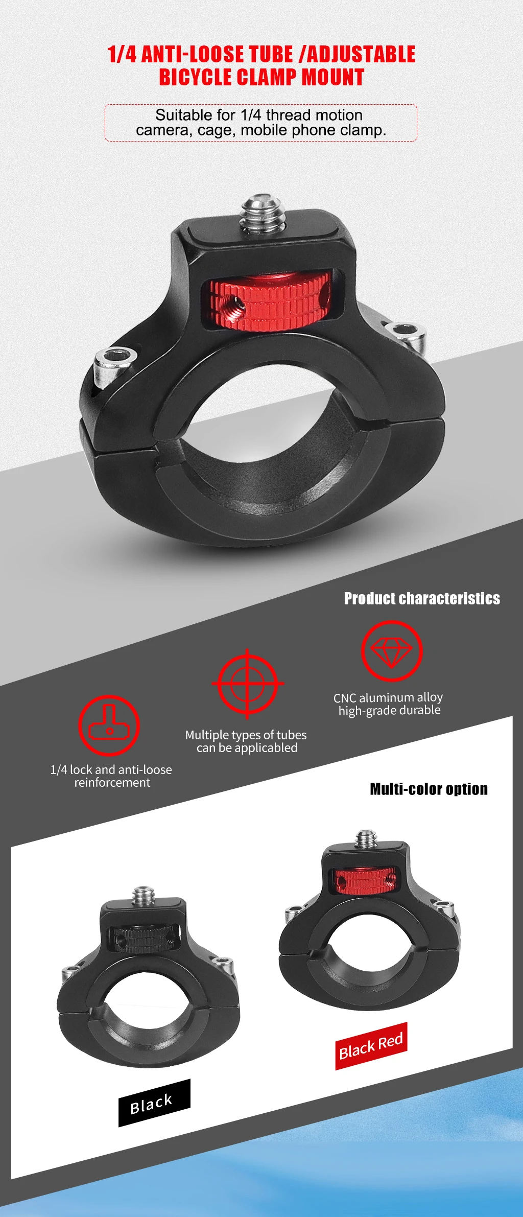 🔹 Rosca universal de 1/4 de pulgada: funciona con GoPro Hero 11/Max, Insta360 ONE R/X2, DJI Osmo Action y otras cámaras o accesorios de acción.