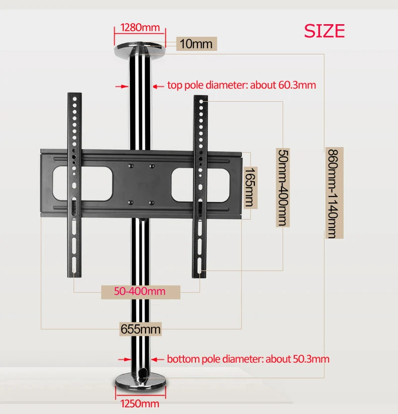 Comprar Soporte de acero inoxidable para TV LCD, montaje de pared divisoria con rotación de 360 grados, Altura ajustable de 110cm, 86cm y 114cm, nuevo, DL-A10S-86