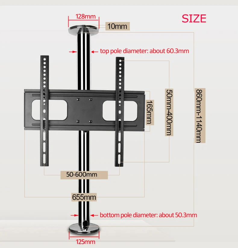 Comprar Soporte de acero inoxidable para TV LCD, montaje de pared divisoria con rotación de 360 grados, altura ajustable de 110cm, 86cm y 114cm, nuevo, DL-A10M-86