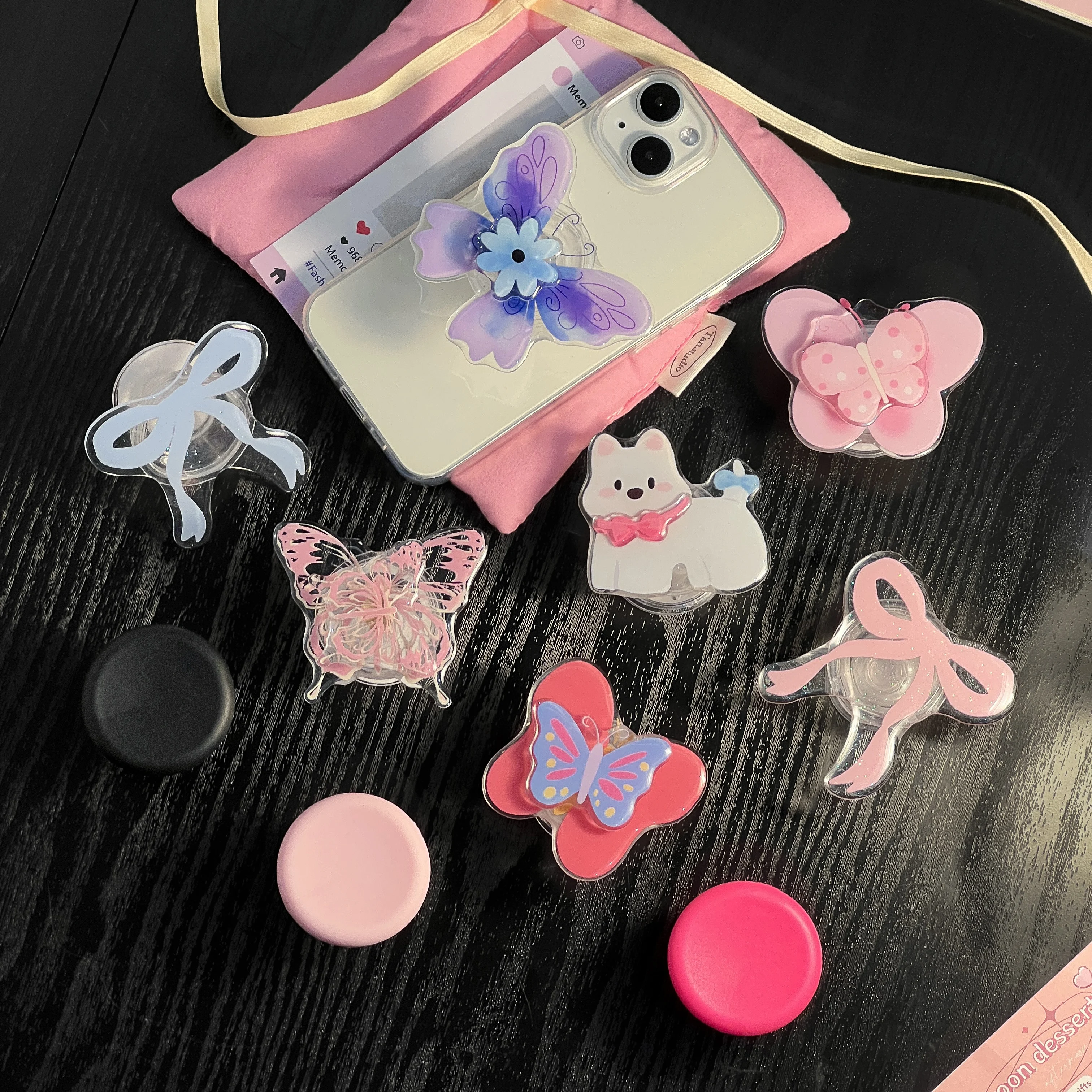 Soporte acrílico para teléfono con nudo de lazo de mariposa, soporte para enchufe, accesorios de teléfono móvil de moda para Apple Huawei Xiaomi Samsung Case