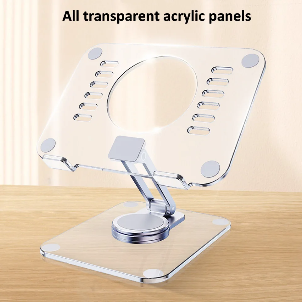 Tablet plegable soporte acrílico transparente soporte rotación 360 ° ahuecado enfriamiento