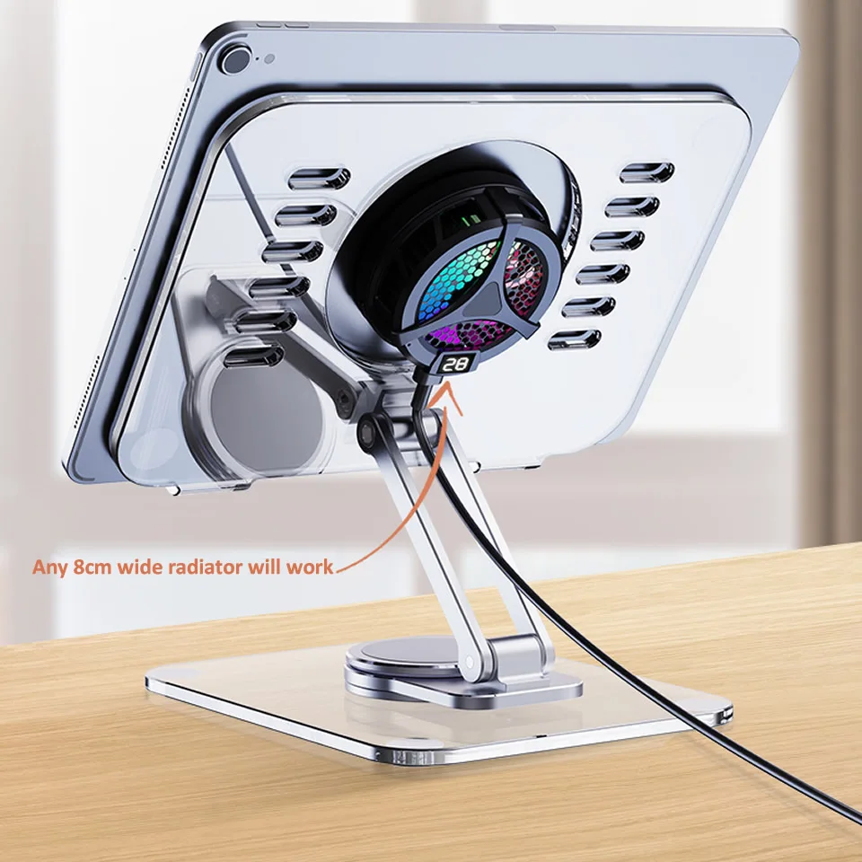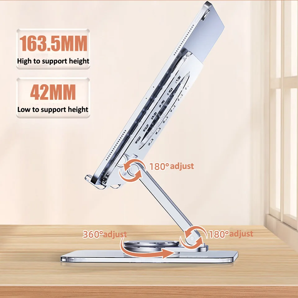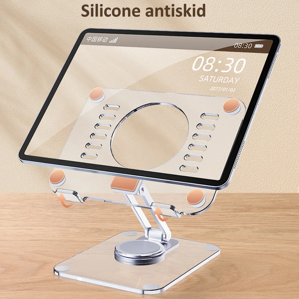 Comprar Soporte acrílico transparente plegable para tableta, soporte de enfriamiento ahuecado con rotación de 360 °, soporte de aleación de aluminio para escritorio para iPad