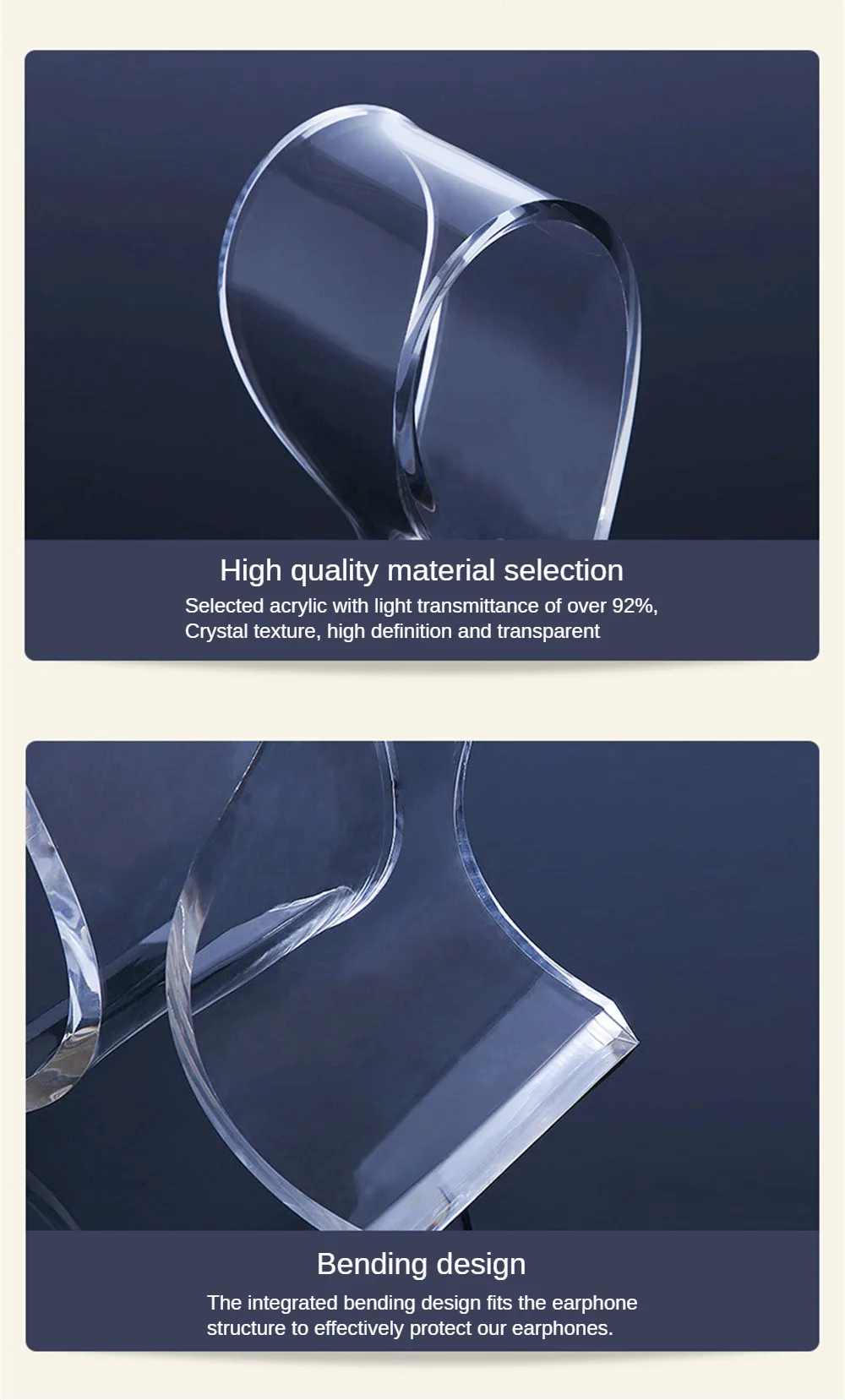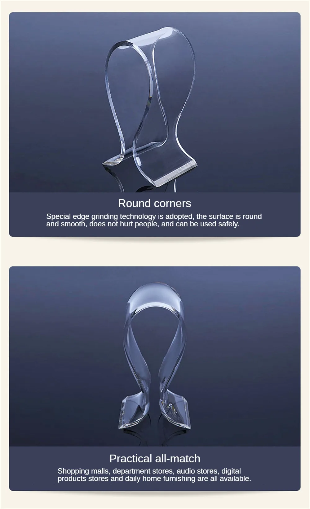 Soporte de exhibición de auriculares acrílico universal, soporte para colgar auriculares transparente, soporte de estante de escritorio para auriculares