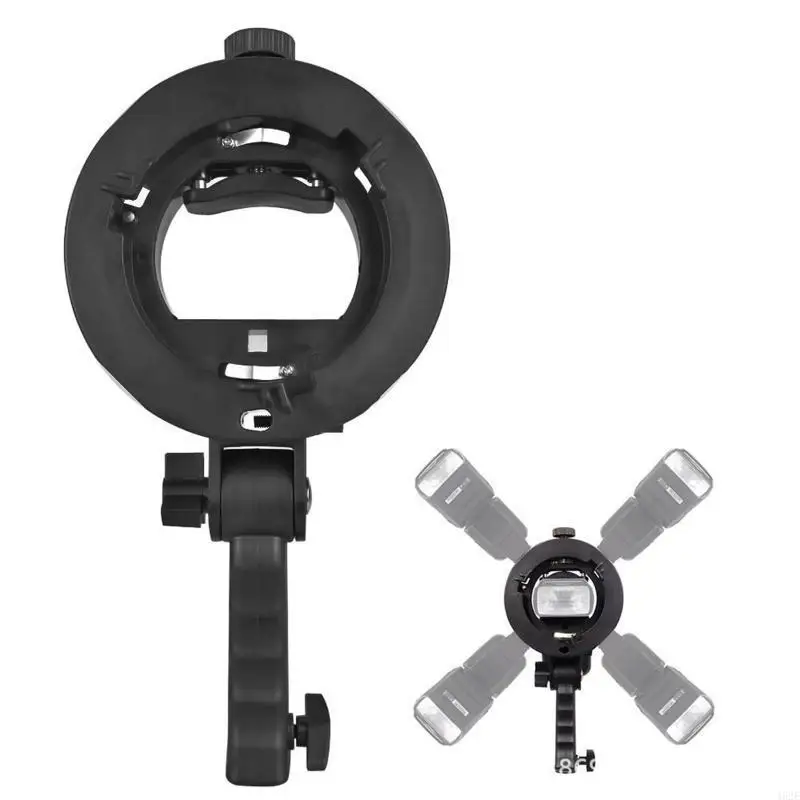 Equipado con un orificio para sombrilla, es fácil instalar un paraguas fotográfico; el eje giratorio admite el ajuste del flash para llenar la luz en diferentes direcciones.