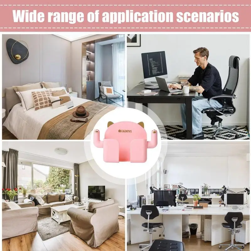 Organize your space and keep your phone within reach with this practical self-adhesive phone holder. Its sleek and minimalist design enhances the beauty of any room. Firmly mount it on the wall without drilling any holes, just stick the glue on the wall. Perfect for the bedroom.