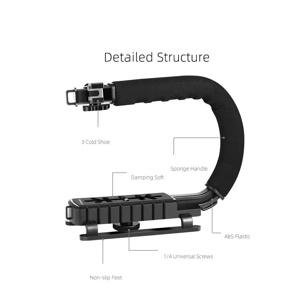 Material: Esta empuñadura en U para cámara de mano está hecha de ABS y una esponja que es duradera para que no sea fácil de dañar.