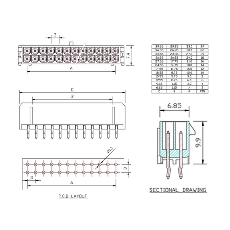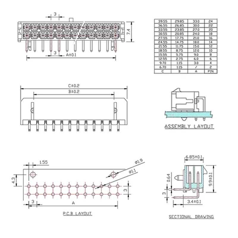 Soporte de aguja curvo recto de 5 piezas 43045 conector de espaciado MX3.0mm doble fila 2P 4P 6P 8P 10P 12P 14P 16P 18P 20 pines