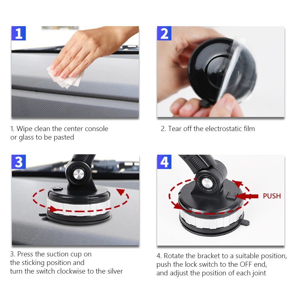 Feature: 1. Enlarged suction cup design. The suction is greater and stronger. The diameter of the upgraded version is 85mm, which is increased by 15mm on the basis of the original version, with stronger and stronger suction 2. Strong suction. The combination of disposable and reusable collets of the instrument panel provides strong clamping force and super adhesion. 3. Navigation while charging. Reserved socket for charging and navigation; It can be placed horizontally or vertically, and the navigation is not limited. You can adjust your favorite angle at will 4. 360 ° universal head rotation. Highly flexible ball joints provide unlimited vision. Put your mobile phone in the perfect angle and enjoy a lighter and safer driving experience. 5. Firm without shaking and zero noise. The rotary lock design is more firm and beautiful, with strong adsorption and stability 6. Large suction cup for water washing and glue filling. Larger size suction cup, stronger suction, more durable Specification: Product color: Black Gray, Black Green (optional) Product material: PC + ABS + metal steel + silica gel Applicable size: suitable for 4.7-6.8-inch mobile phone Product size: 30x11.5cm/1.2X4.5in (straightened) Color box size: length, width and height 15x8.7x11.4cm/5.9x3.4x4.5in Net weight: 280g Gross weight: 340g Usage method: 1. Clean the center console or glass to be pasted 2. Tear off the electrostatic film 3. Press the suction cup to the paste position and tighten the switch clockwise 4. Rotate the support to the appropriate position, push the locking switch to the off end, and adjust the position of each joint Note: Due to the different monitor and light effect, the actual color of the item might be slightly different from the color showed on the pictures. Thank you! Please allow 1-2cm measuring deviation due to manual measurement. ![]() ![]() ![]() ![]() ![]() ![]() ![]() ![]() ![]() ![]() ![]() ![]() ![]() ![]() ![]() ![]() ![]() ![]() ![]() ![]() |
