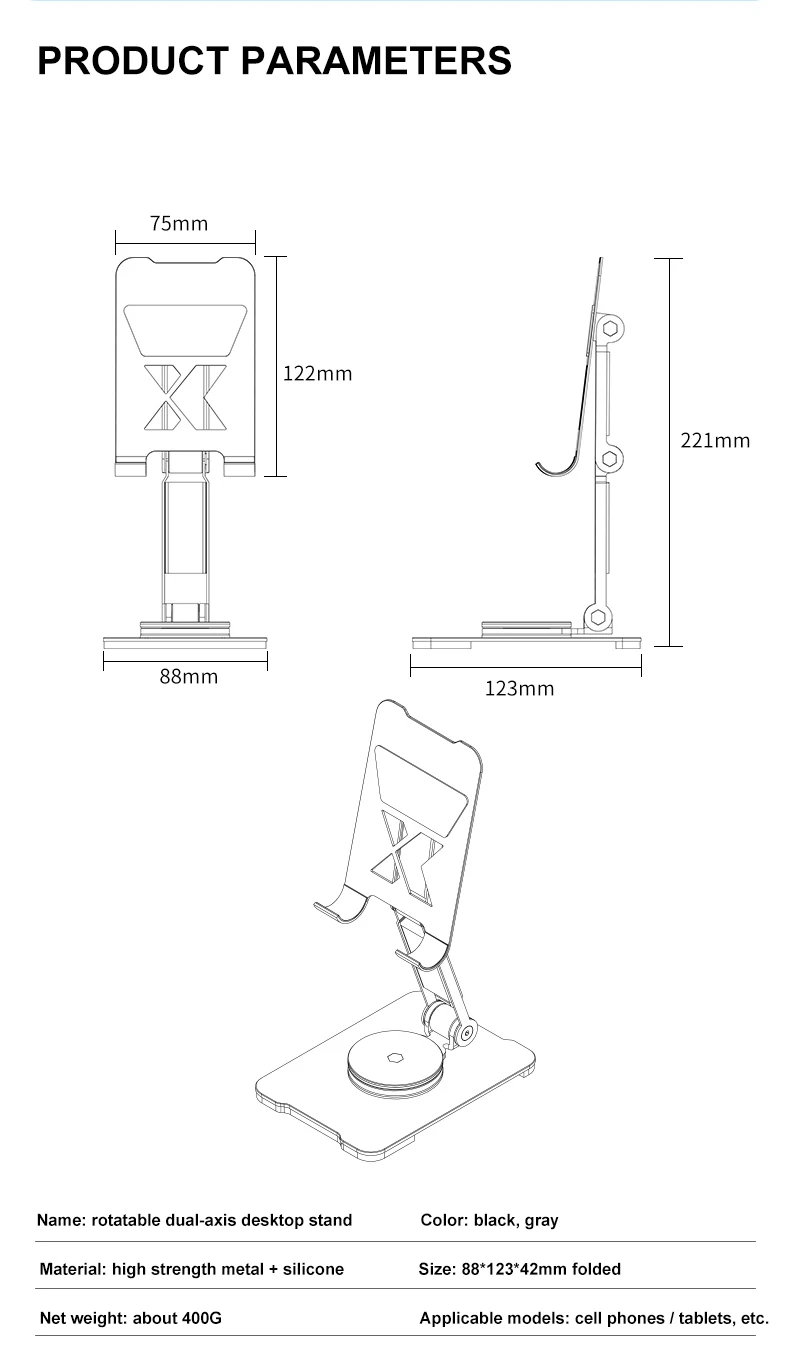 Soporte ajustable de aleación de aluminio para teléfono móvil, soporte plegable, soporte de transmisión en vivo de escritorio perezoso para IPhone Huawei Redmi