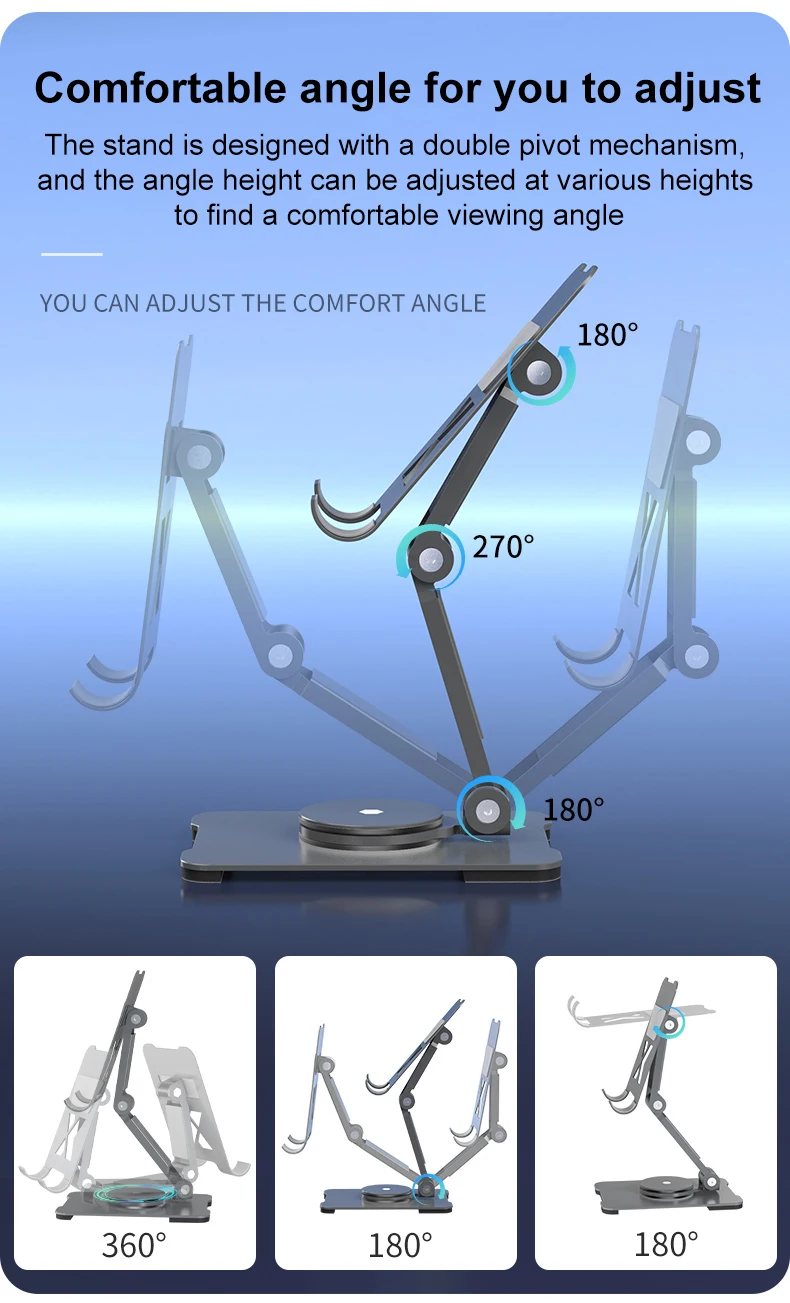 Diseño de doble eje, 180 ° se puede ajustar a cualquier altura/ángulo, qué cómodo es.