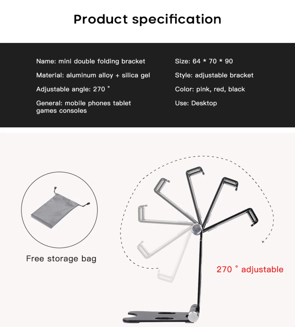 Teléfono móvil y tableta, ángulo ajustable, compacto y portátil.