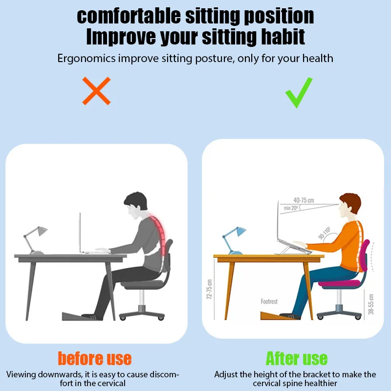 Hay opciones de altura para fijar la postura y reducir el dolor de espalda, la rigidez del cuello y los dolores de muñeca.