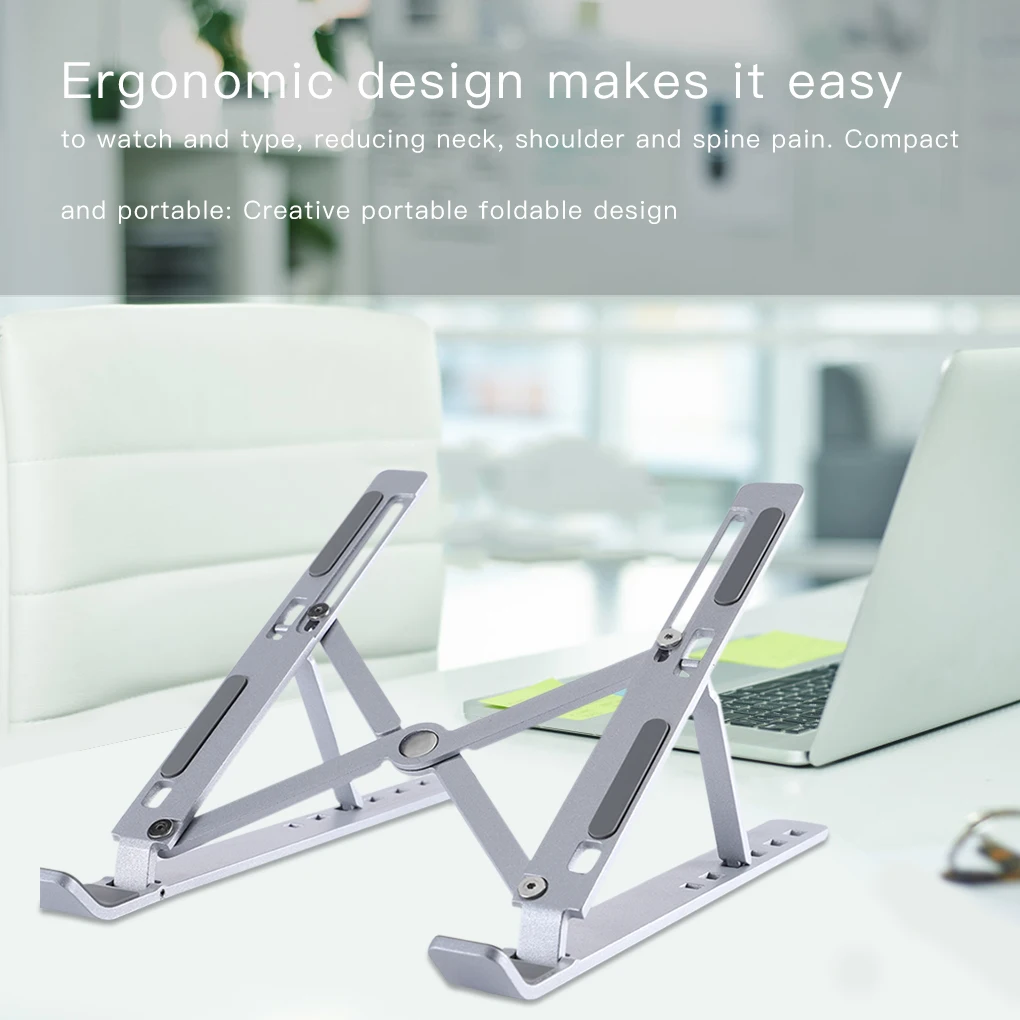 Diseño plegable, el soporte para ordenador portátil se puede plegar con la bolsa de almacenamiento portátil para facilitar su transporte.