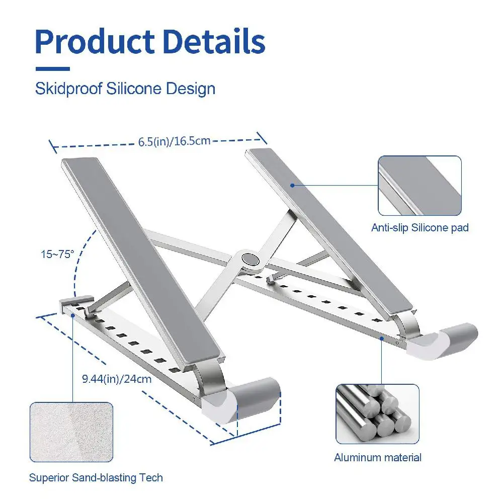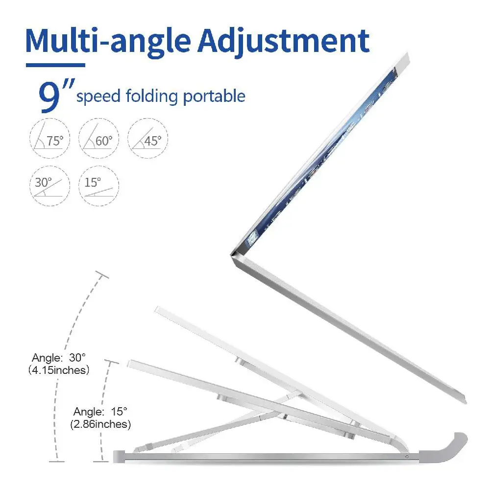 Soporte portátil, ajustable y plegable para computadora portátil con peso ligero, puede soportar una carga estática de 30kg