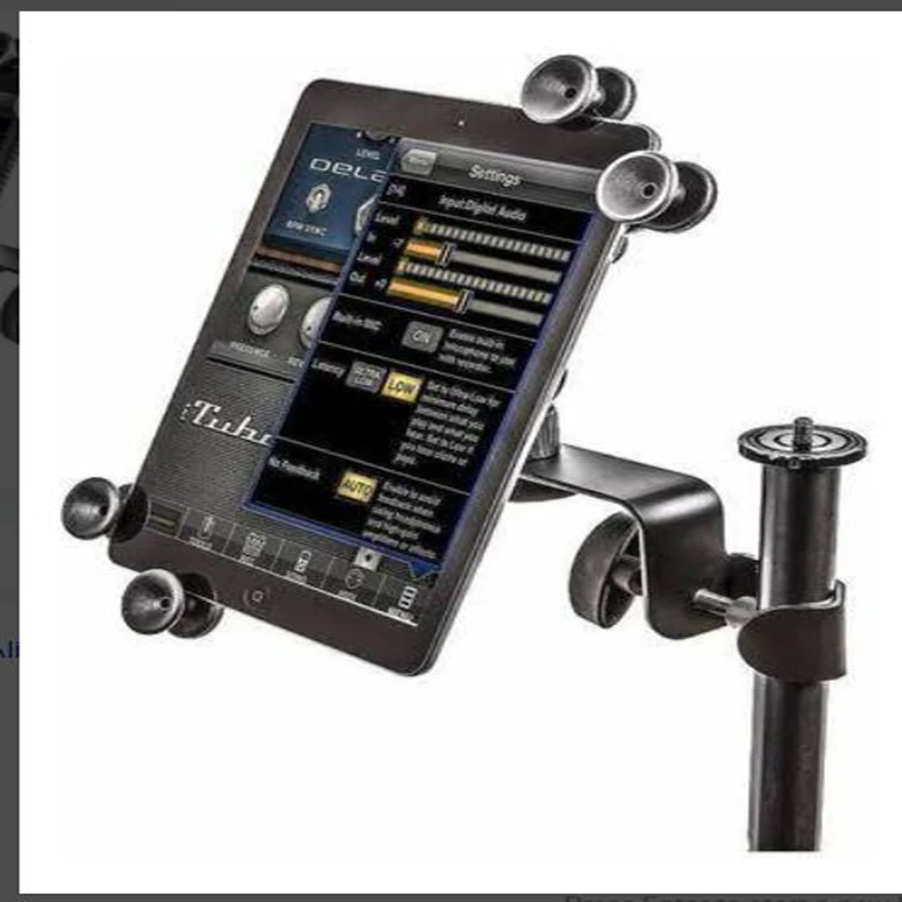 Soporte muy práctico. Se ajusta fácilmente al tamaño de la pantalla. La tableta se sujeta bien y el soporte es estable. Es preferible quitar la funda de la tableta para mayor estabilidad. Por supuesto, se adapta a un soporte de micrófono o un soporte de escritorio.