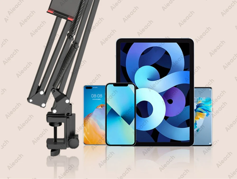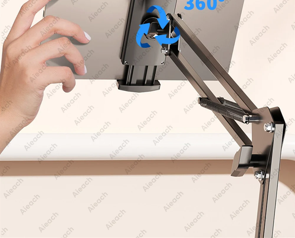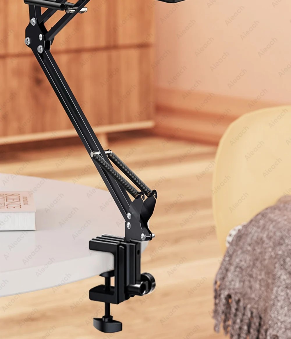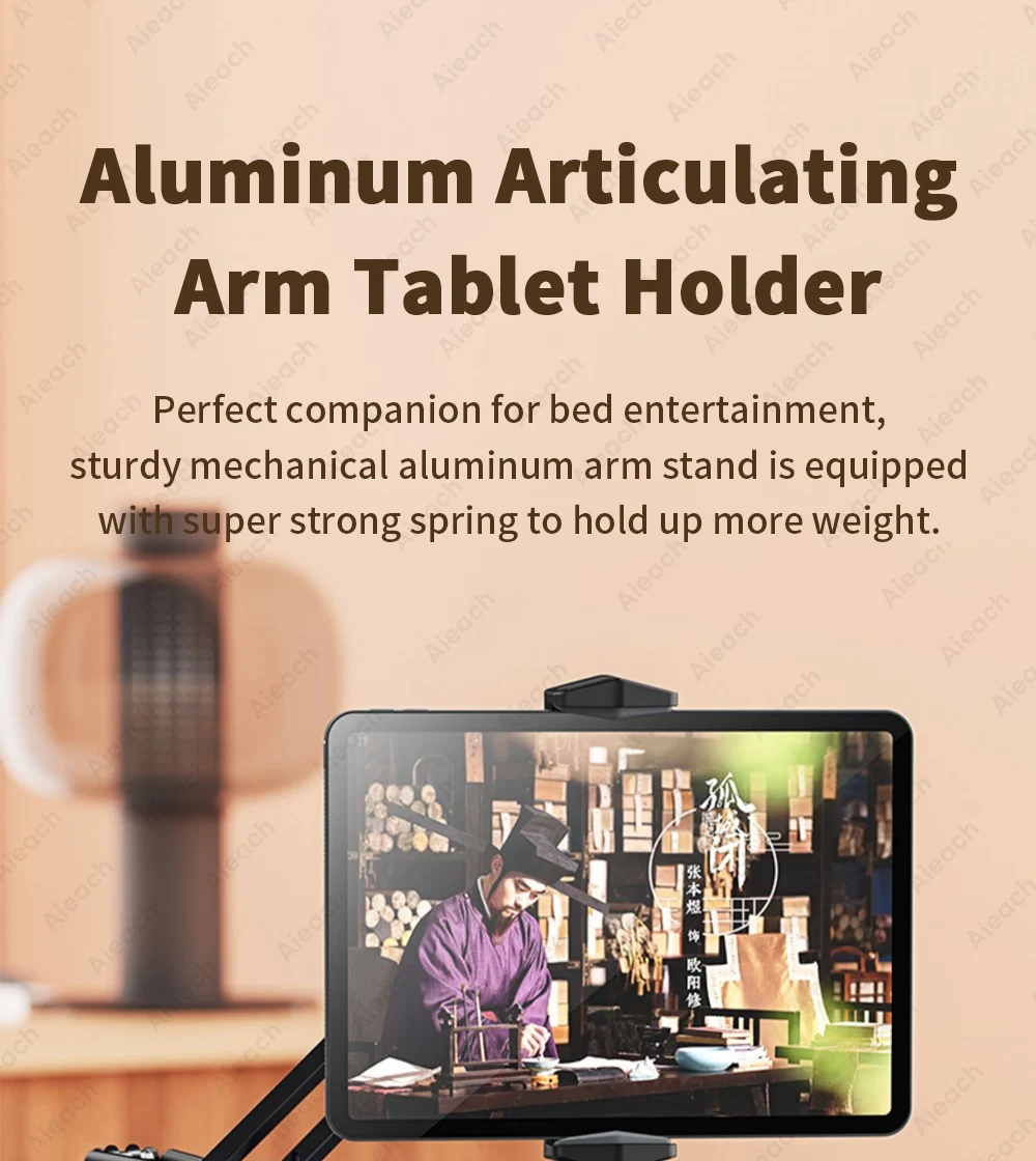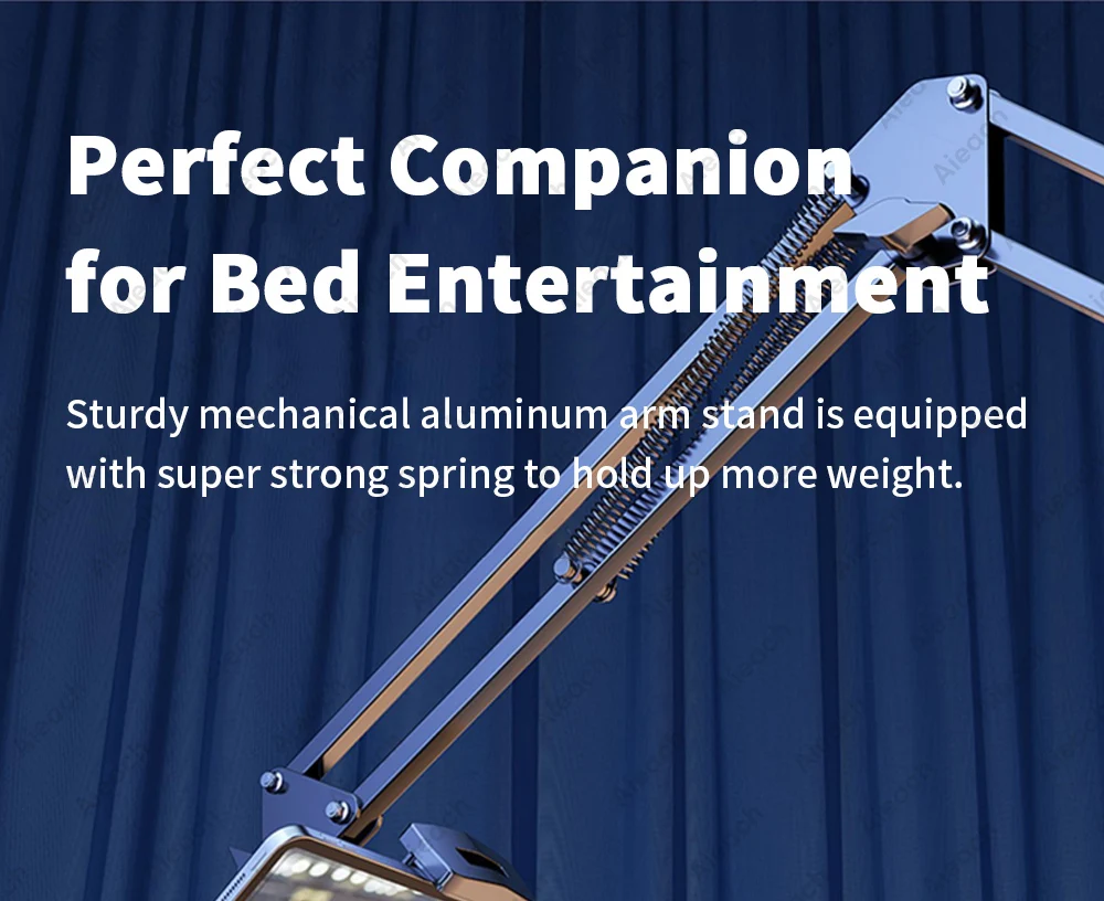 Compañero perfecto para entretenimiento en la cama, el resistente soporte de brazo mecánico de aluminio está equipado con un resorte súper fuerte para soportar más peso.