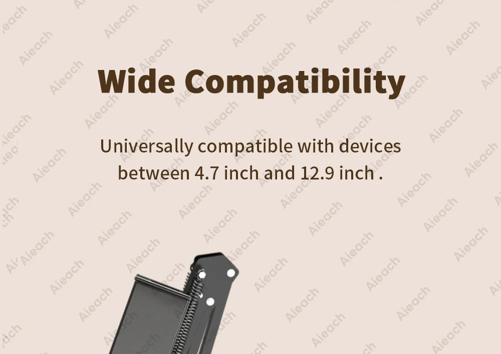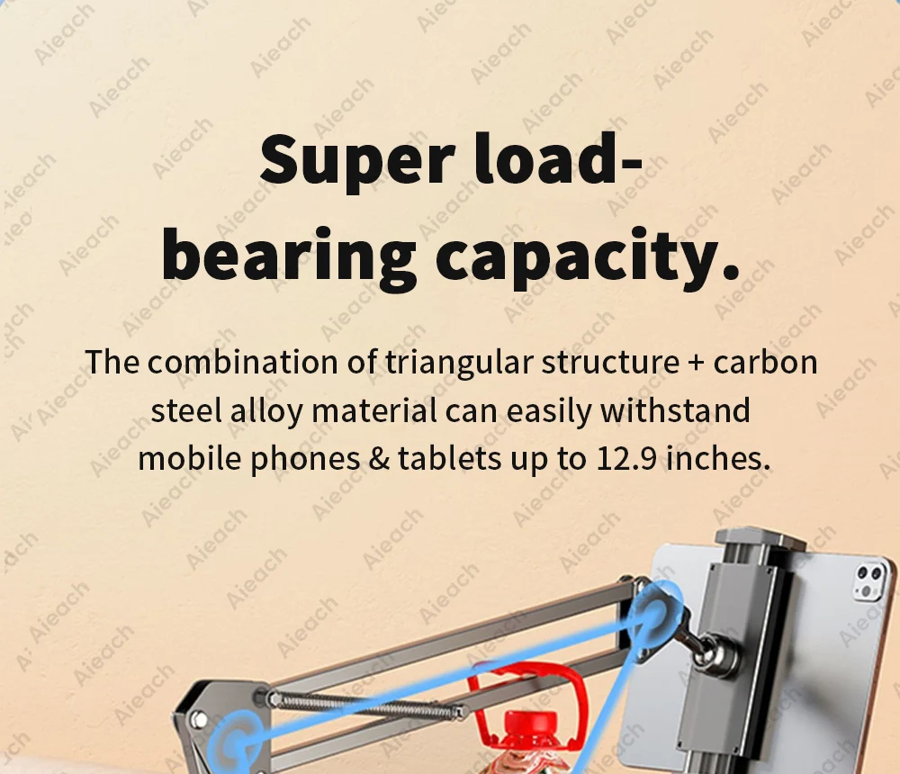 La combinación de estructura triangular + material de aleación de acero al carbono puede soportar fácilmente teléfonos móviles y tabletas de hasta 12,9 pulgadas.