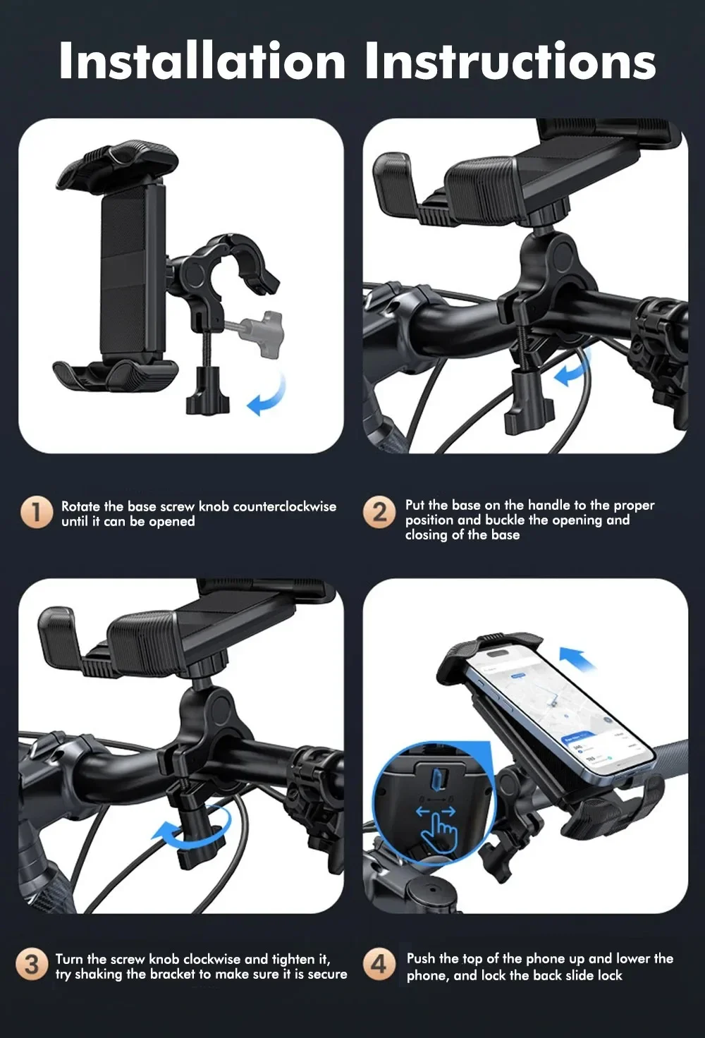 4.Absorción de impactos y prevención de rayones: el soporte para teléfono con sombrilla para bicicleta está hecho de ABS y resina, materiales conocidos por su capacidad para absorber vibraciones y evitar rayones en la superficie de su teléfono.Esto garantiza que su dispositivo permanezca en perfectas condiciones, brindando durabilidad y seguridad durante sus viajes.