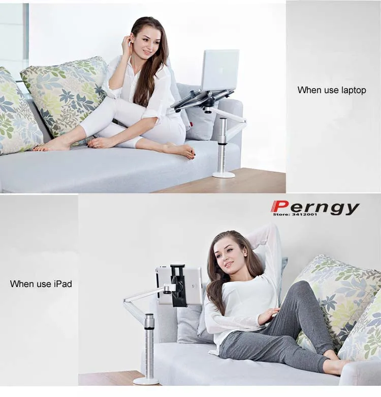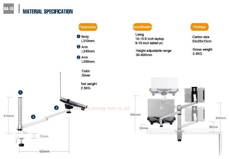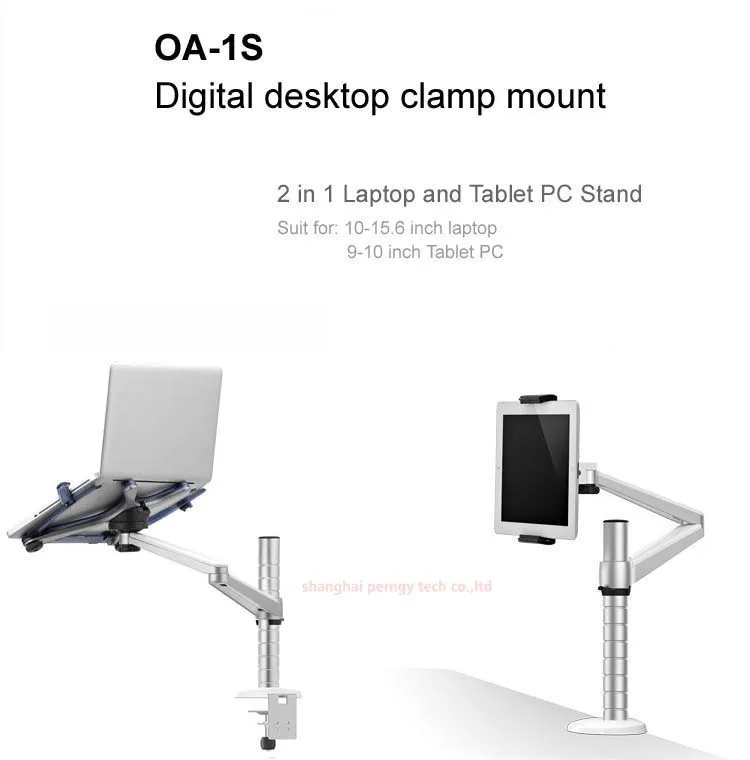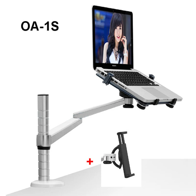 Comprar Soporte de aleación de aluminio con rotación de 360 grados para tableta y ordenador portátil, soporte de doble brazo para escritorio de oficina y Lapdesk, 2 en 1, OA-1S