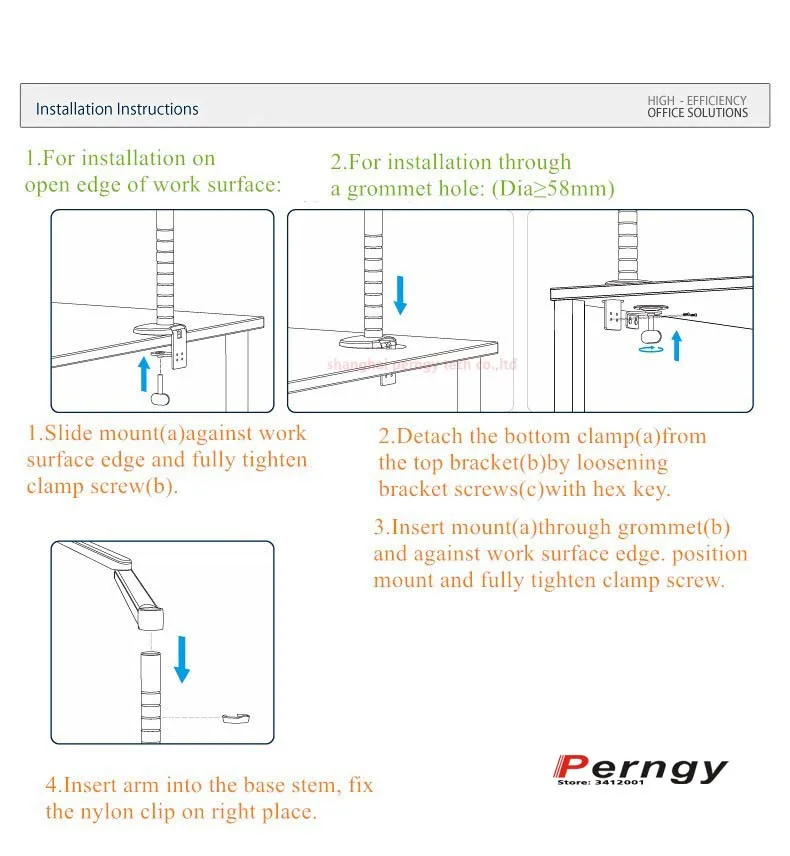 Instalación: Sujeción de escritorio o montaje con ojales.