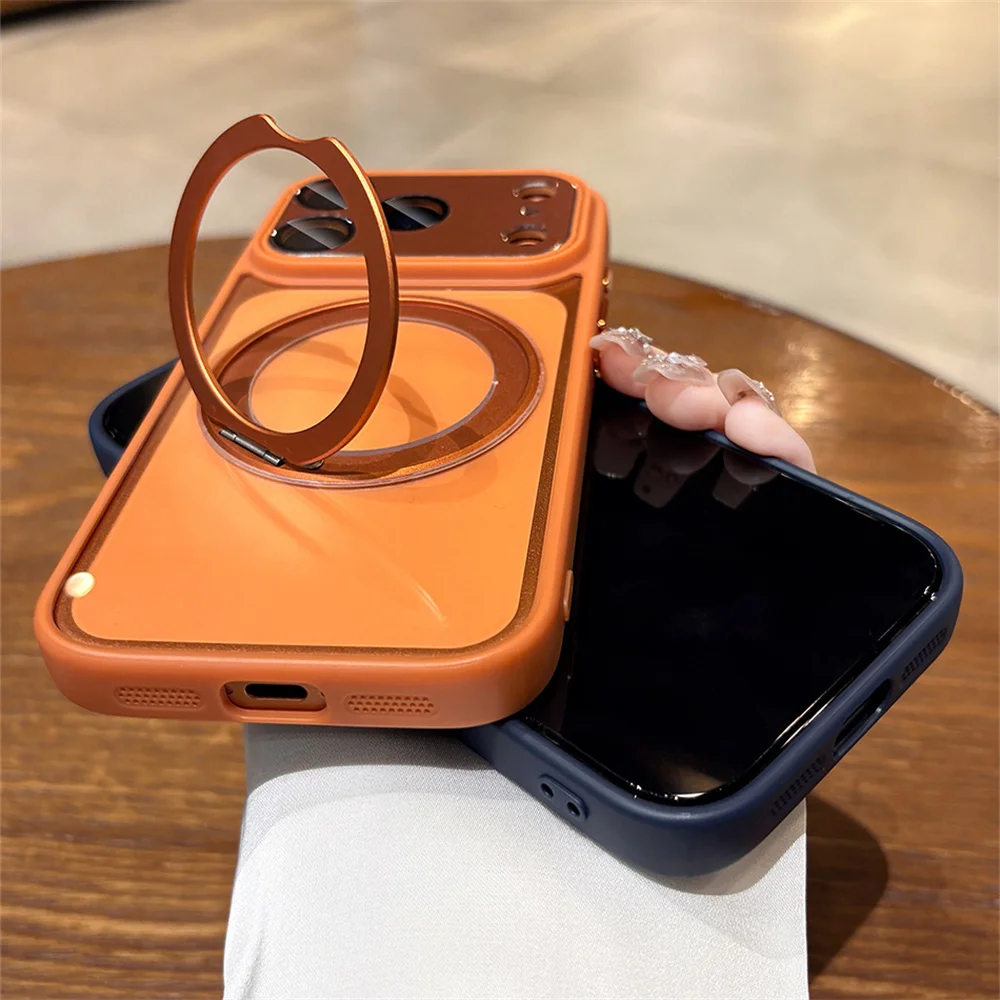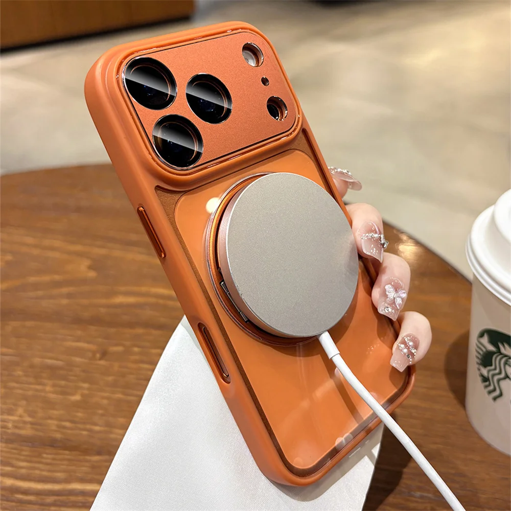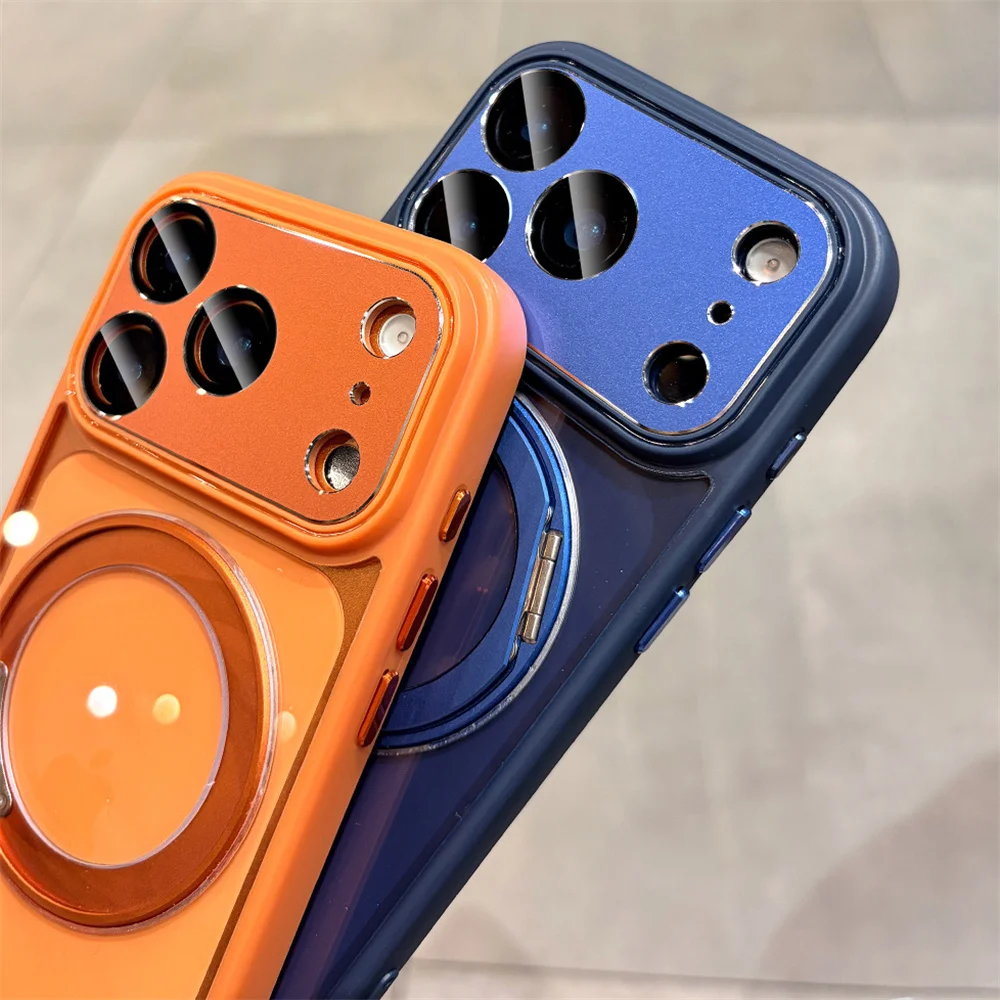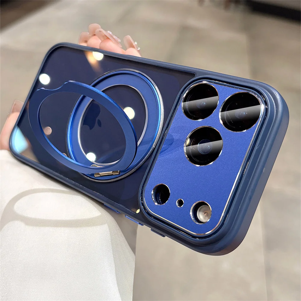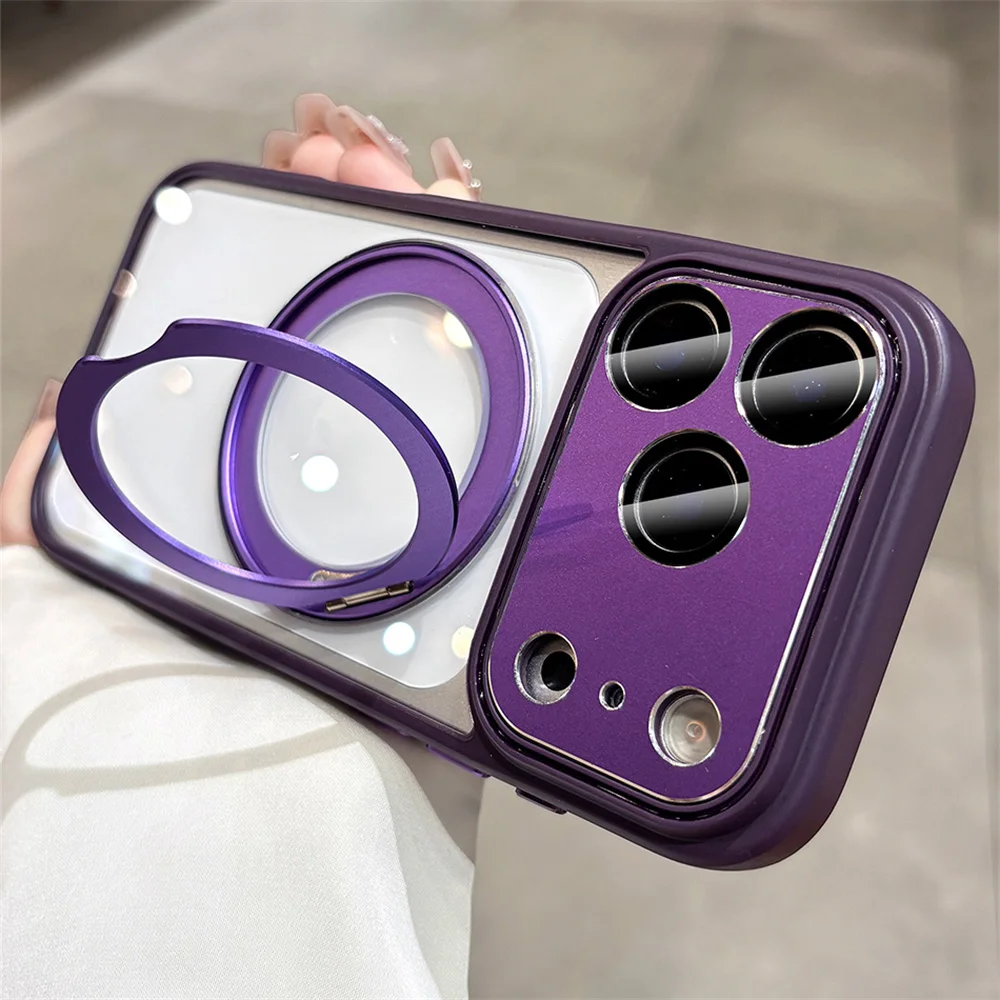 Soporte de aleación de aluminio soporte giratorio funda de teléfono magnética para iPhone 17 16 14 15 13 12 Pro Max protección de lente de aire cubierta transparente