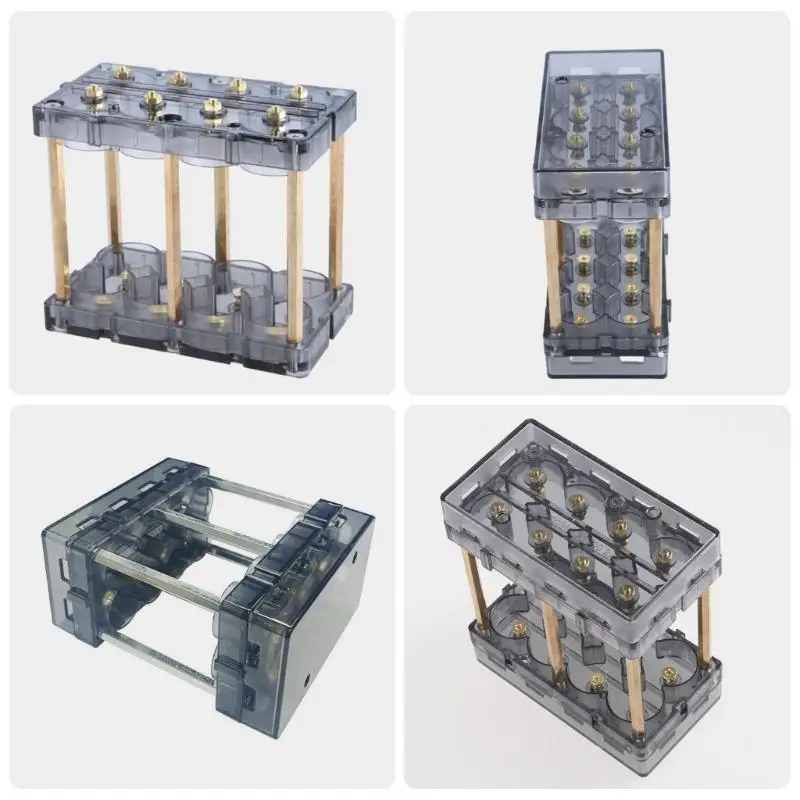 de PC+ABS con barras colectoras de cobre, este estuche con soporte para batería garantiza soporte actual y estabilidad para proyectos de almacenamiento de energía para soldar.