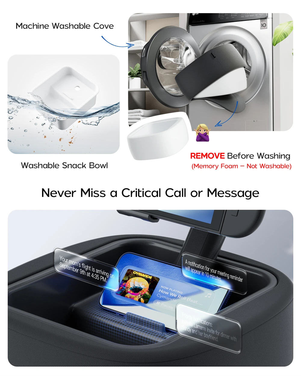 Cuenco de refrigerio incorporado para sesiones de maratón:Nunca pierda el enfoque buscando snacks.Nuestra almohada cuenta con un compartimento exclusivo de tamaño generoso para mantener sus golosinas y bebidas favoritas al alcance de la mano, lo que la convierte en el accesorio definitivo para un juego inmersivo y prolongado.