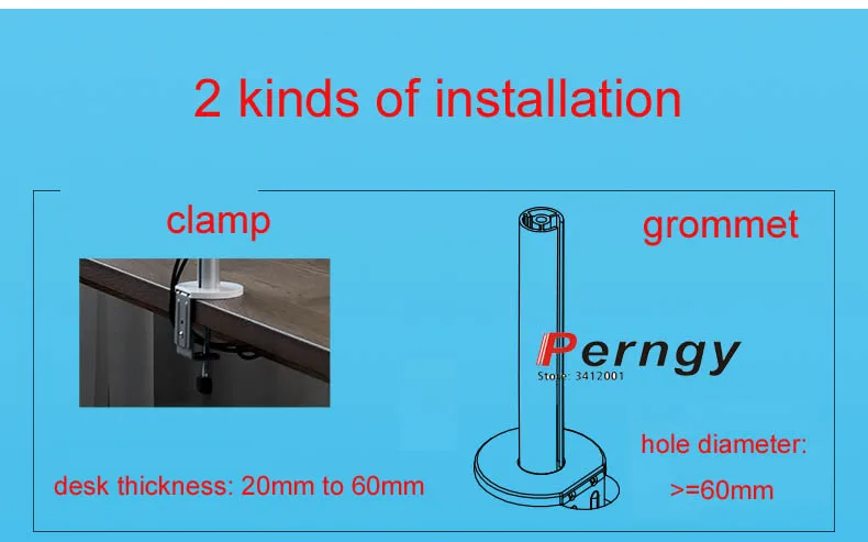 Espesor del escritorio: 20-60mm para la sujeción del escritorio;