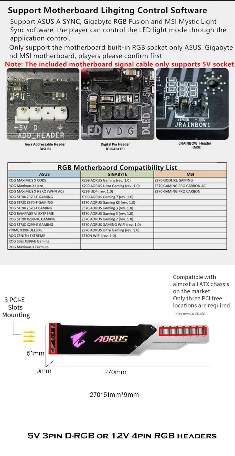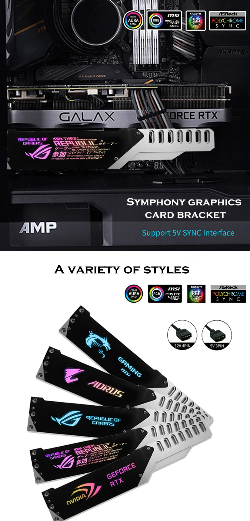 Comprar Soporte de aluminio para GPU, tarjeta de vídeo ARGB de 5V, VGA, decoración de armario de PC, RGB, MSI, AORUS, ROG, AURA, SYNC