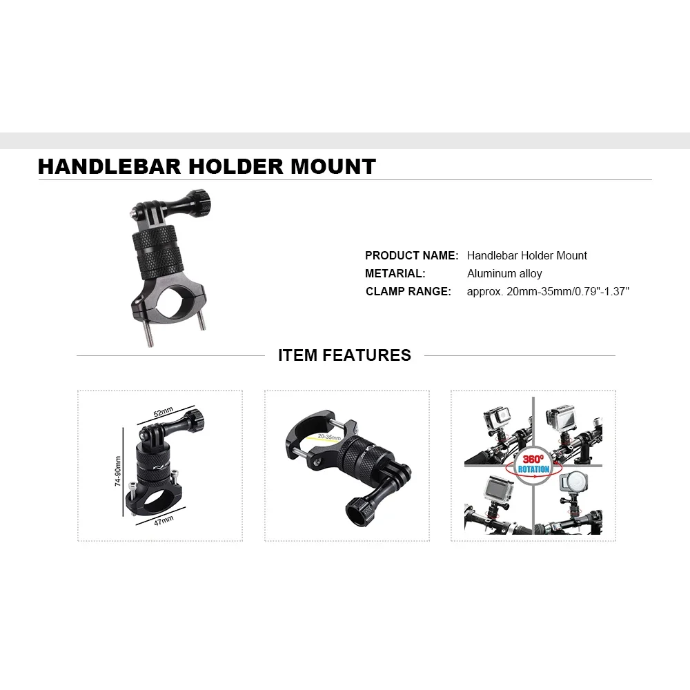 Comprar Soporte de aluminio para manillar de bicicleta, montaje de trípode giratorio, brazo mágico para GoPro Hero 10, 9, 8, 7, 5, Xiaomi Sjcam Eken Go Pro, accesorio