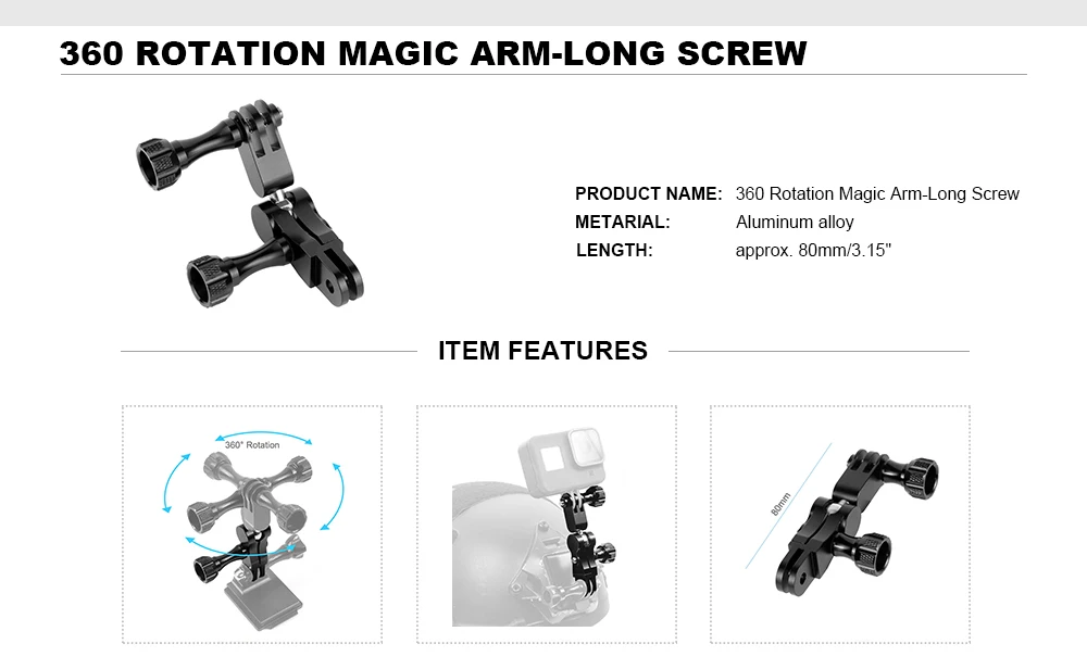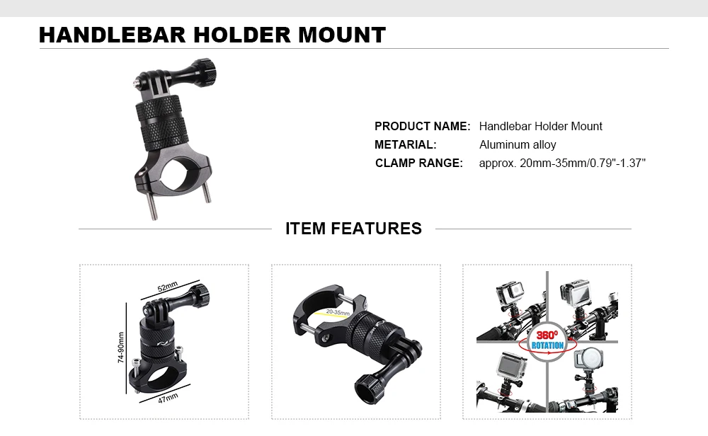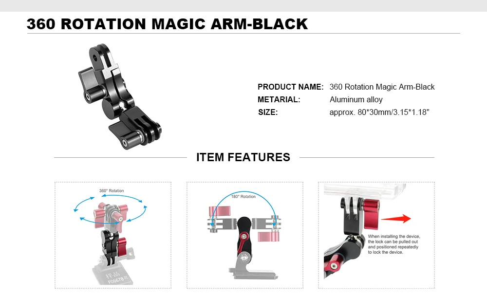 Comprar Soporte de aluminio para manillar de bicicleta, montaje de trípode giratorio, brazo mágico para GoPro Hero 10, 9, 8, 7, 5, Xiaomi Sjcam Eken Go Pro, accesorio