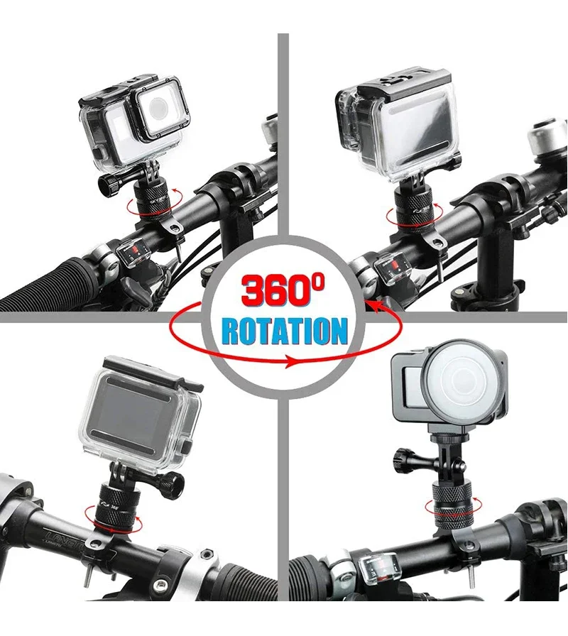 El soporte de manillar de bicicleta con cámara giratoria permite una rotación de 360 grados para su disparo desde diferentes ángulos, cumple con sus requisitos de disparo general.