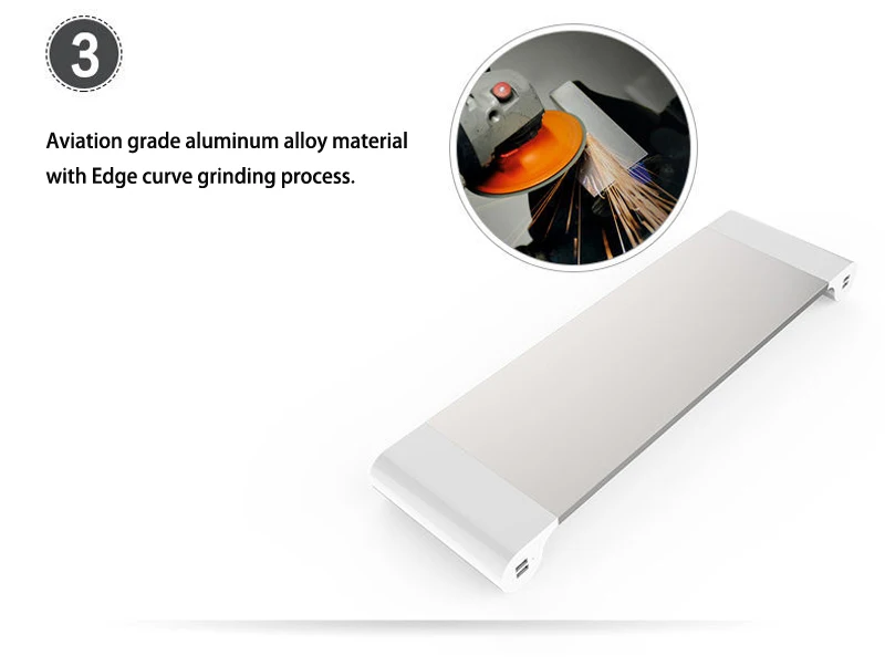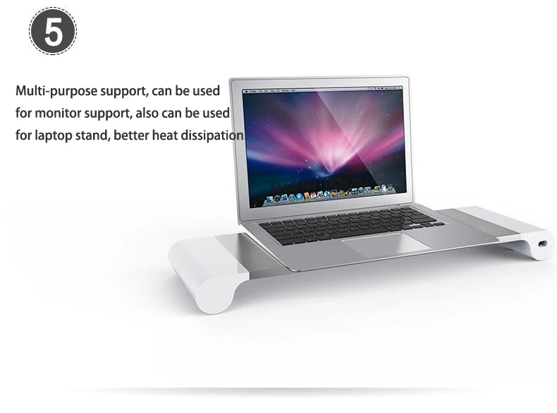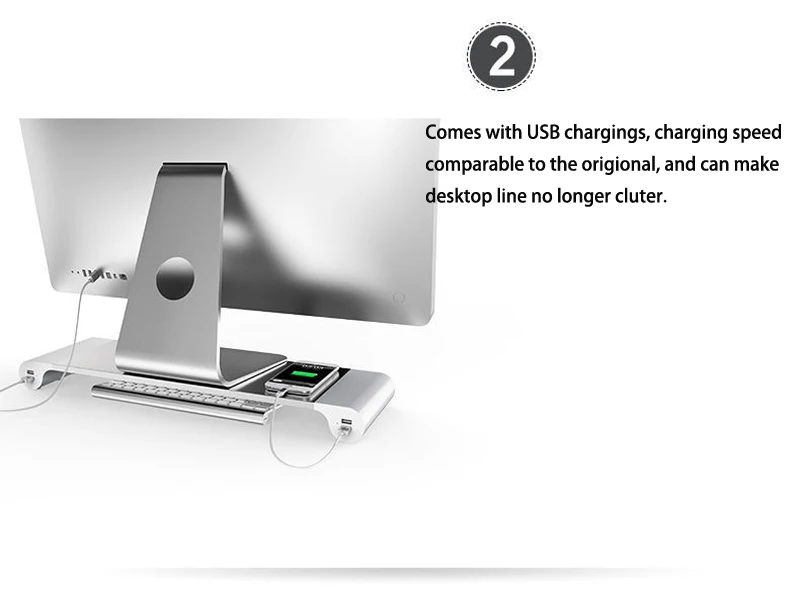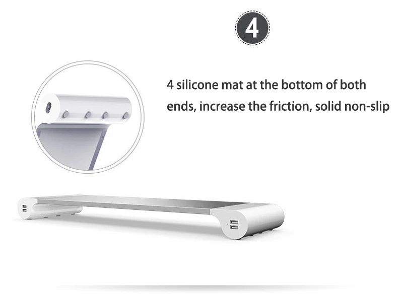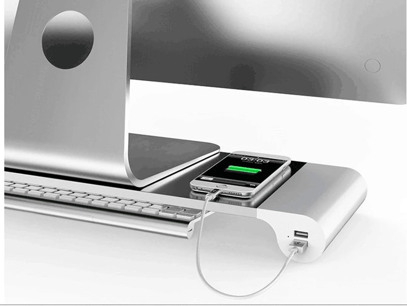 Soporte de monitor de escritorio de aleación de aluminio Barra espaciadora Elevador de soporte antideslizante para computadora portátil con carga USB de 4 puertos