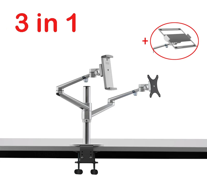 Comprar Soporte de aluminio para Monitor de escritorio, base 3 en 1 de altura ajustable, doble brazo, 17-32 pulgadas, 10-17 pulgadas, soporte para ordenador portátil y soporte para tableta de 14 pulgadas, OL-3T