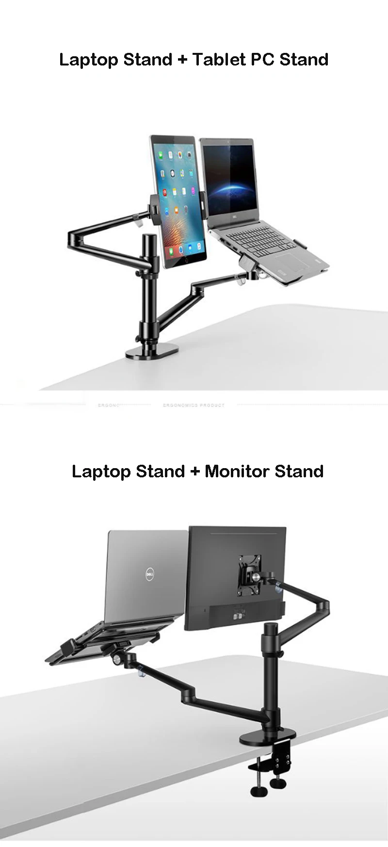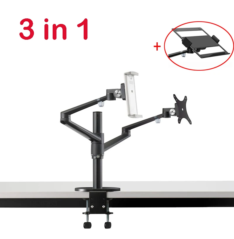 Soporte de montaje para monitor dual + soporte para portátil + soporte para tableta PC