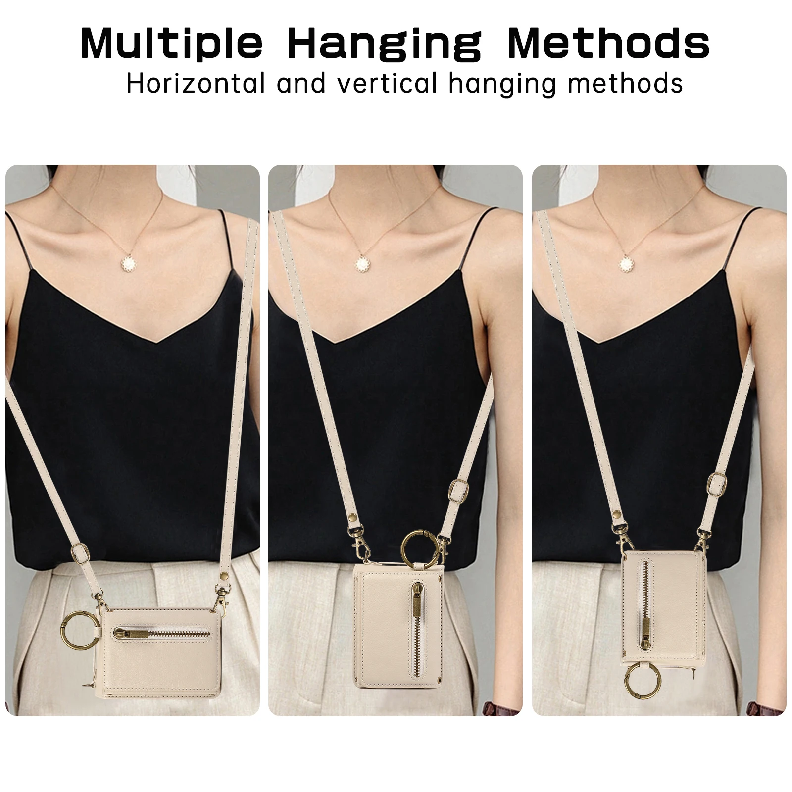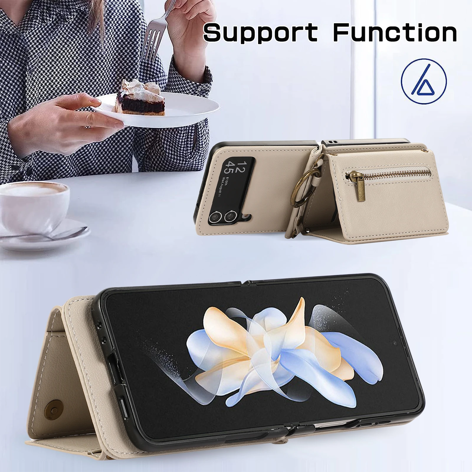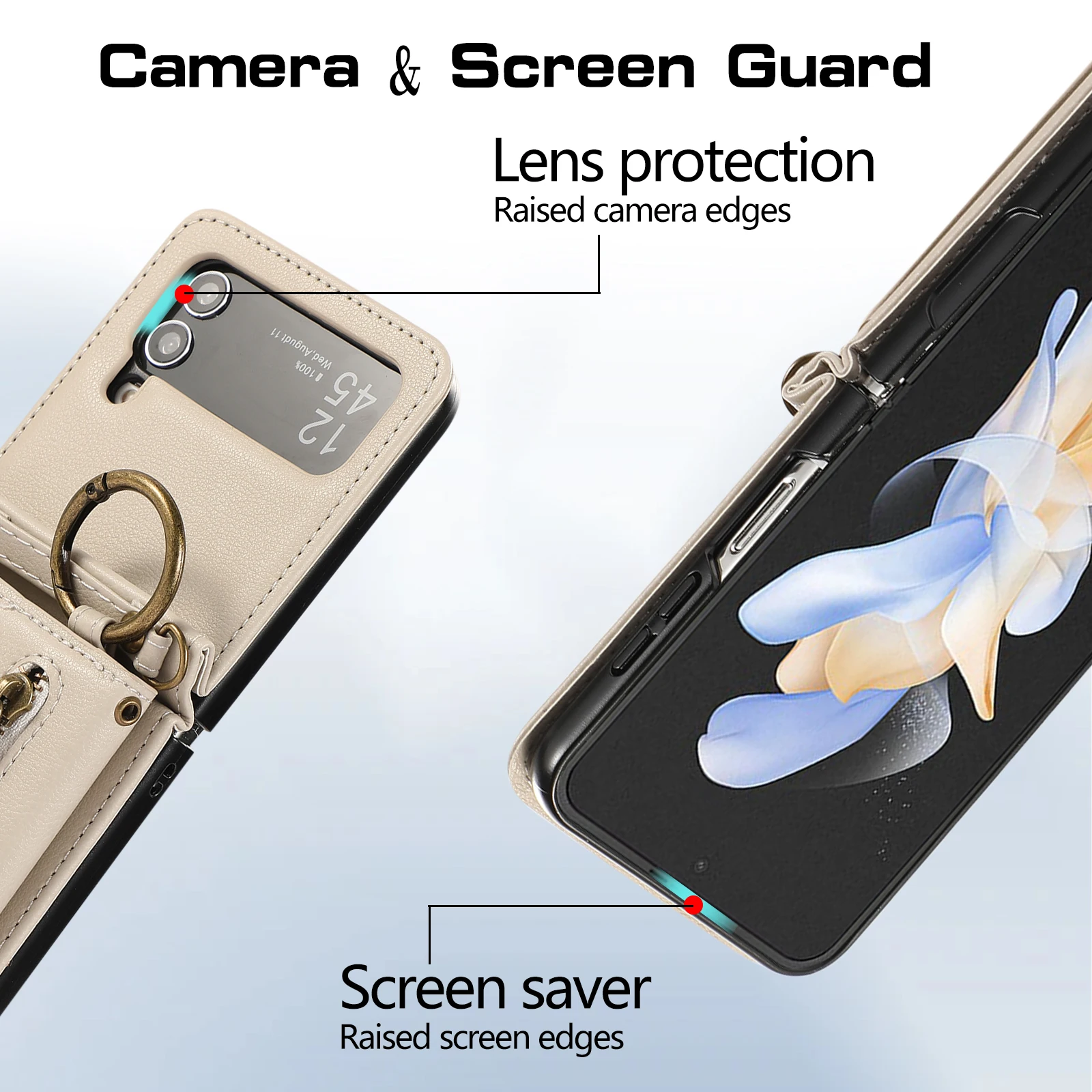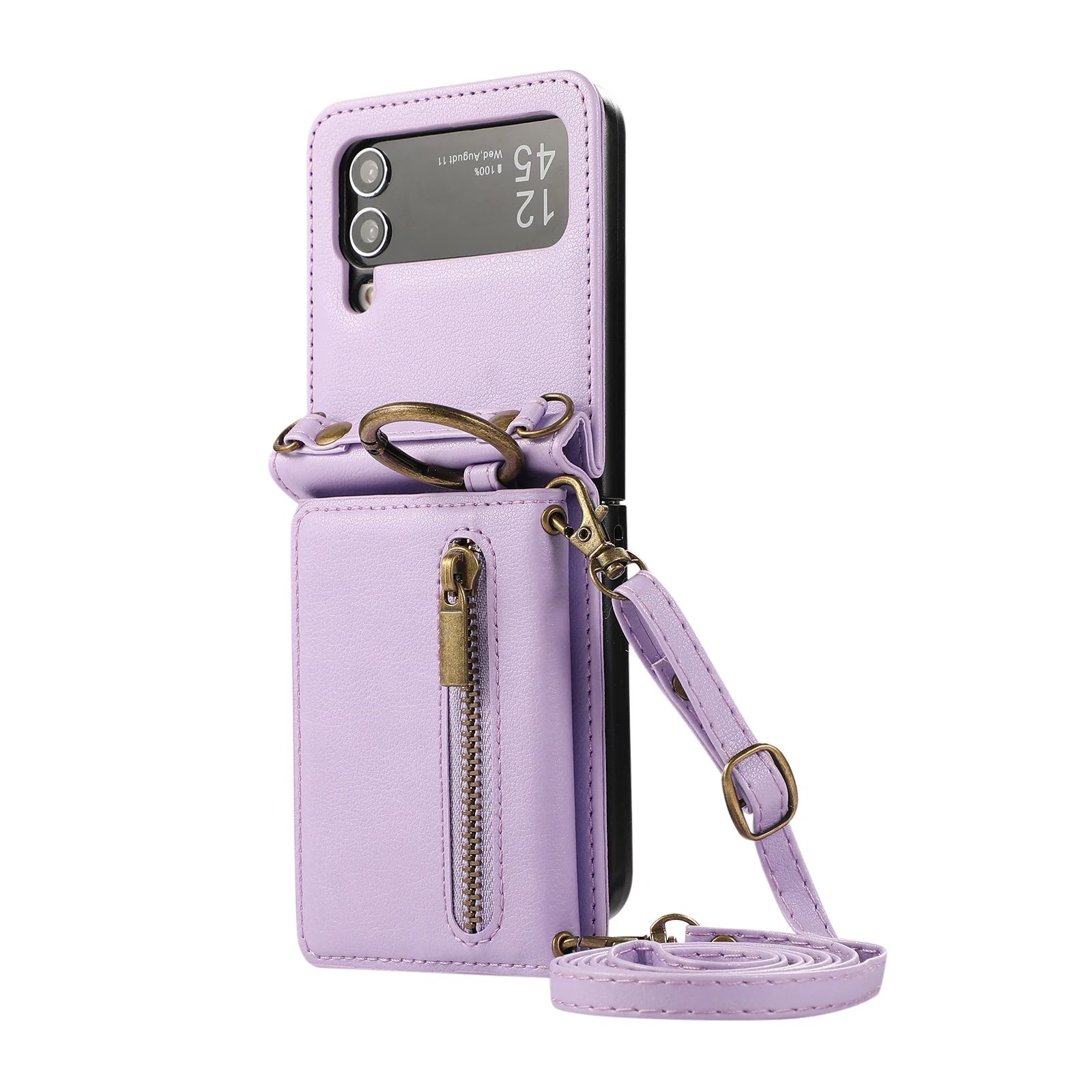Soporte de anillo con cordón para tarjetas con cremallera, Funda de cuero tipo billetera Solt para Samsung Galaxy Z Flip 6 5 4 3, funda cruzada con soporte triple plegable