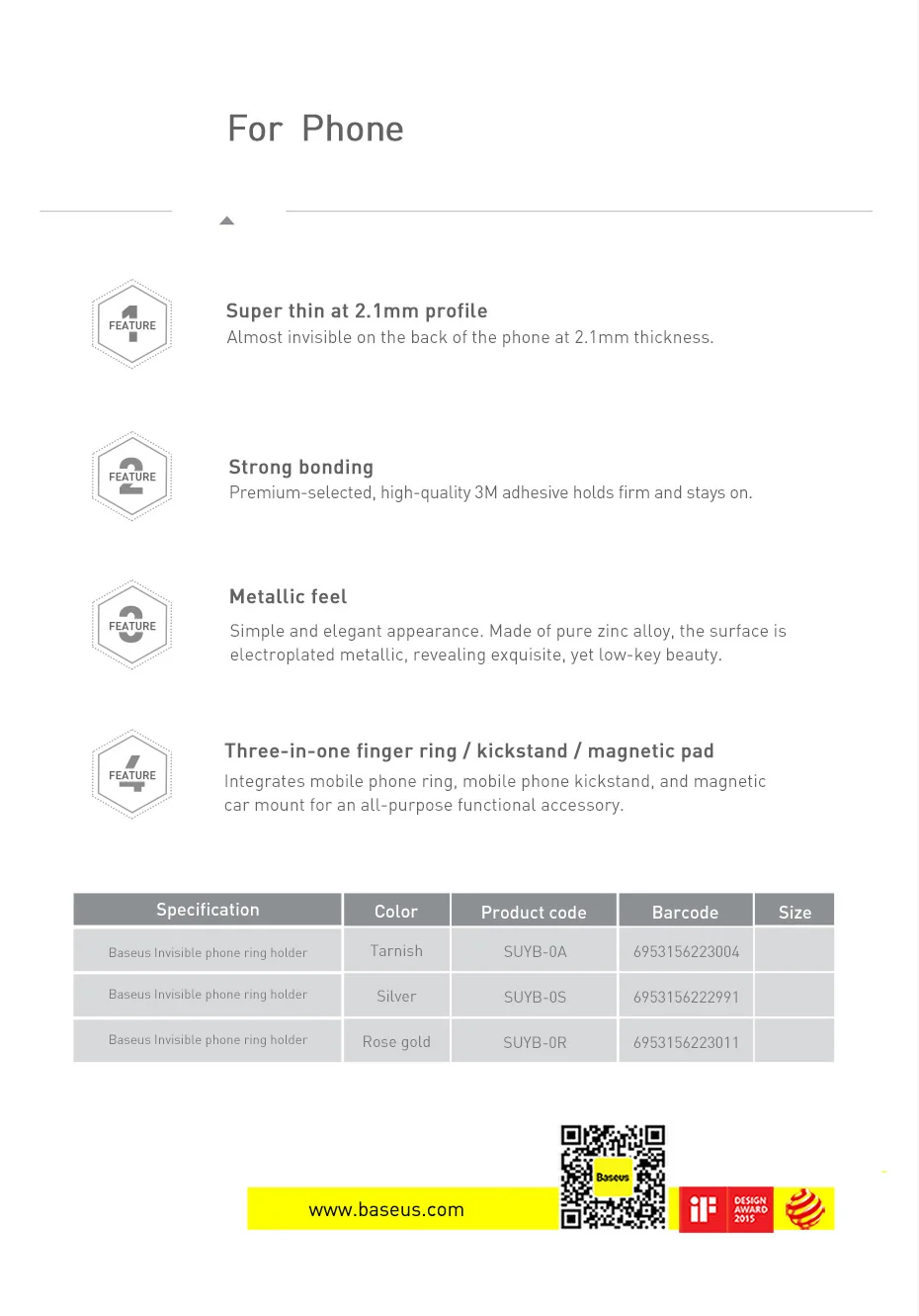 Nombre: Soporte de anillo de teléfono invisible Baseus