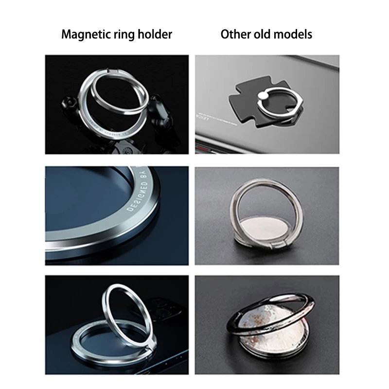 5.Simple y directo de usar, simplemente coloque el soporte de anillo en la parte posterior de su teléfono o funda de teléfono con compatibilidad.Su fuerte cerradura magnética garantiza una conexión resistente y confiable, brindando la tranquilidad de que su dispositivo está seguro.