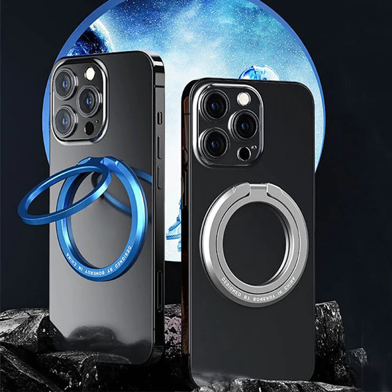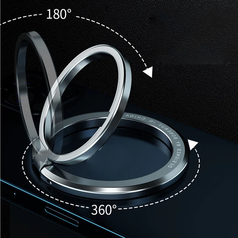 3. Disfrute de la libertad del funcionamiento del teléfono con una sola mano o transfórmelo en un soporte de escritorio para verlo con manos libres.Ya sea que esté enviando mensajes de texto, navegando o viendo videos, nuestro soporte para anillos ofrece comodidad y flexibilidad con sus 180° voltear y 360° capacidades de rotación.