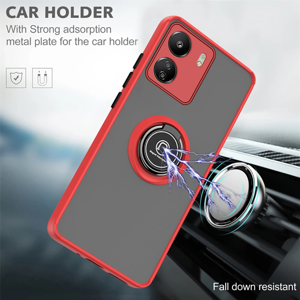 Funda mate con soporte de anillo magnético para coche para Xiaomi Poco C65, Funda de silicona con protección completa para lentes, Funda Poxo Pocco C 65 65C PocoC65 4G