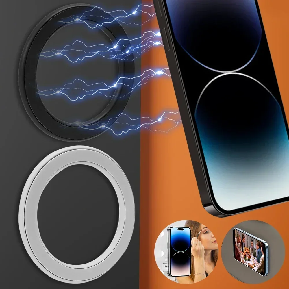 Especificación Aplicación: Aplicable a los modelos de la serie magnética magsafe; Se pueden utilizar otros modelos con una funda magnética para teléfono. Dimensiones: Diámetro 58 mm, espesor 3,8 mm Material: aleación, imán, pegamento sin costuras Cantidad: 1/2