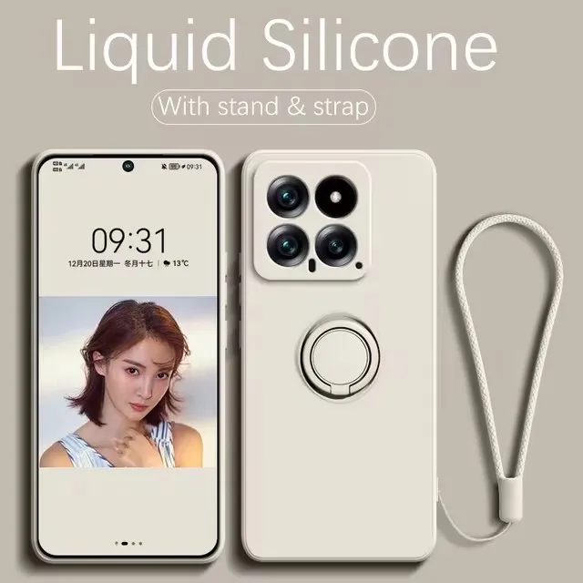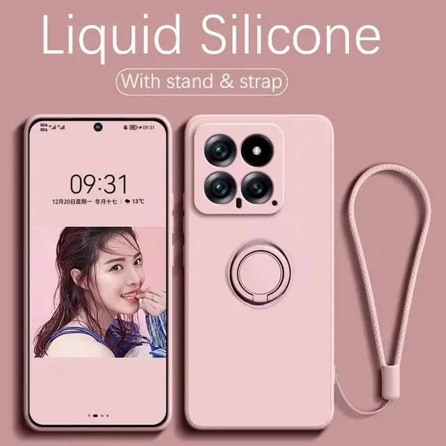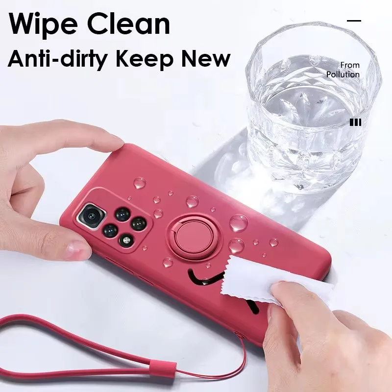 Funda con cordón para soporte de anillo magnético de silicona líquida para Xiaomi Redmi Note 13 pro Plus Note 12 11 Pro MI 11T 12T 13T Poco X6 X5 X3
