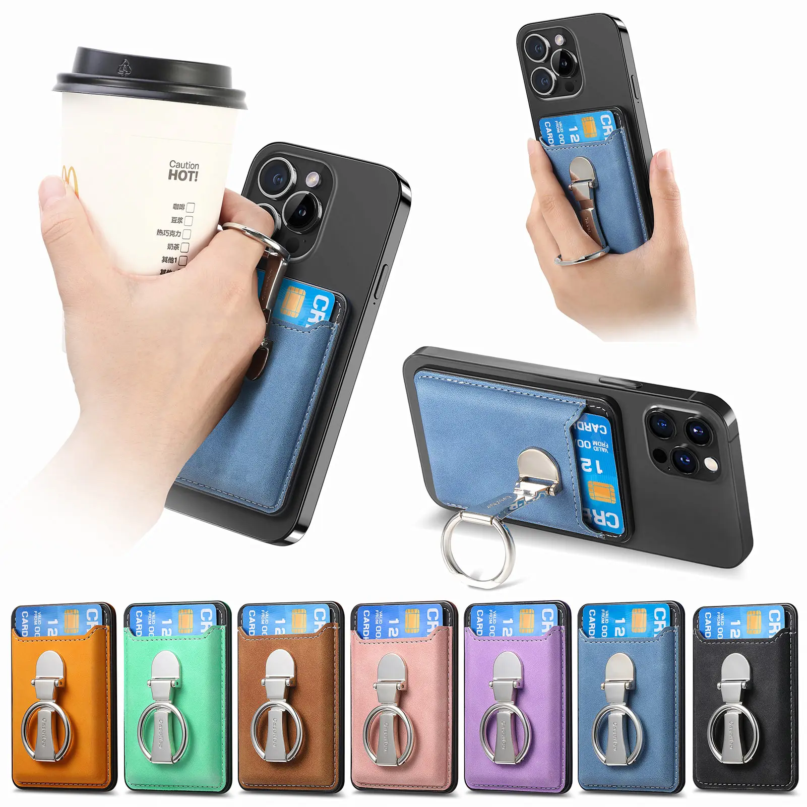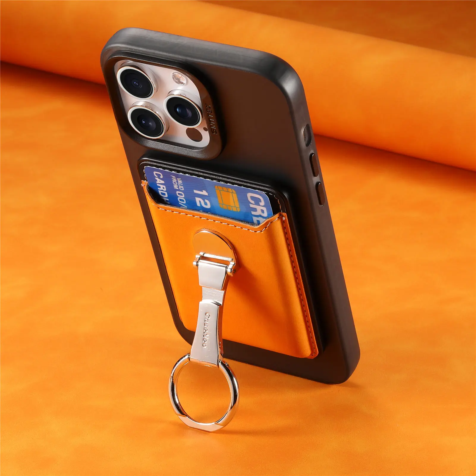 Soporte de anillo para tarjetas magnéticas, funda tipo billetera de cuero Magsafe para iPhone 15 13 12 14 Pro Max 15Pro S24, funda con soporte para teléfono