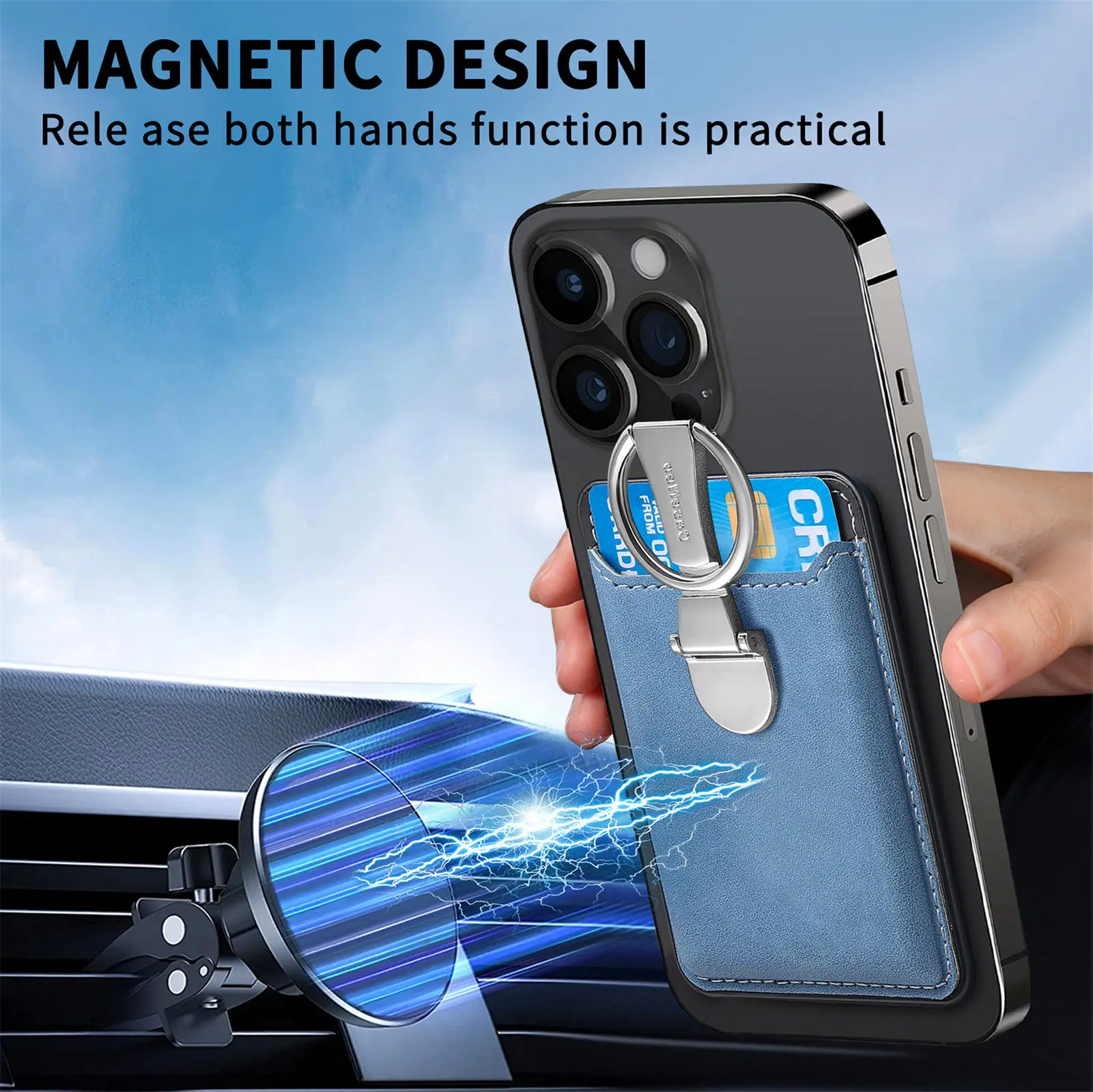 Comprar Soporte de anillo tarjetero magnético para Magsafe funda tipo billetera de cuero para iPhone 15 13 12 14 Pro Max 15Pro S24 funda con soporte para teléfono